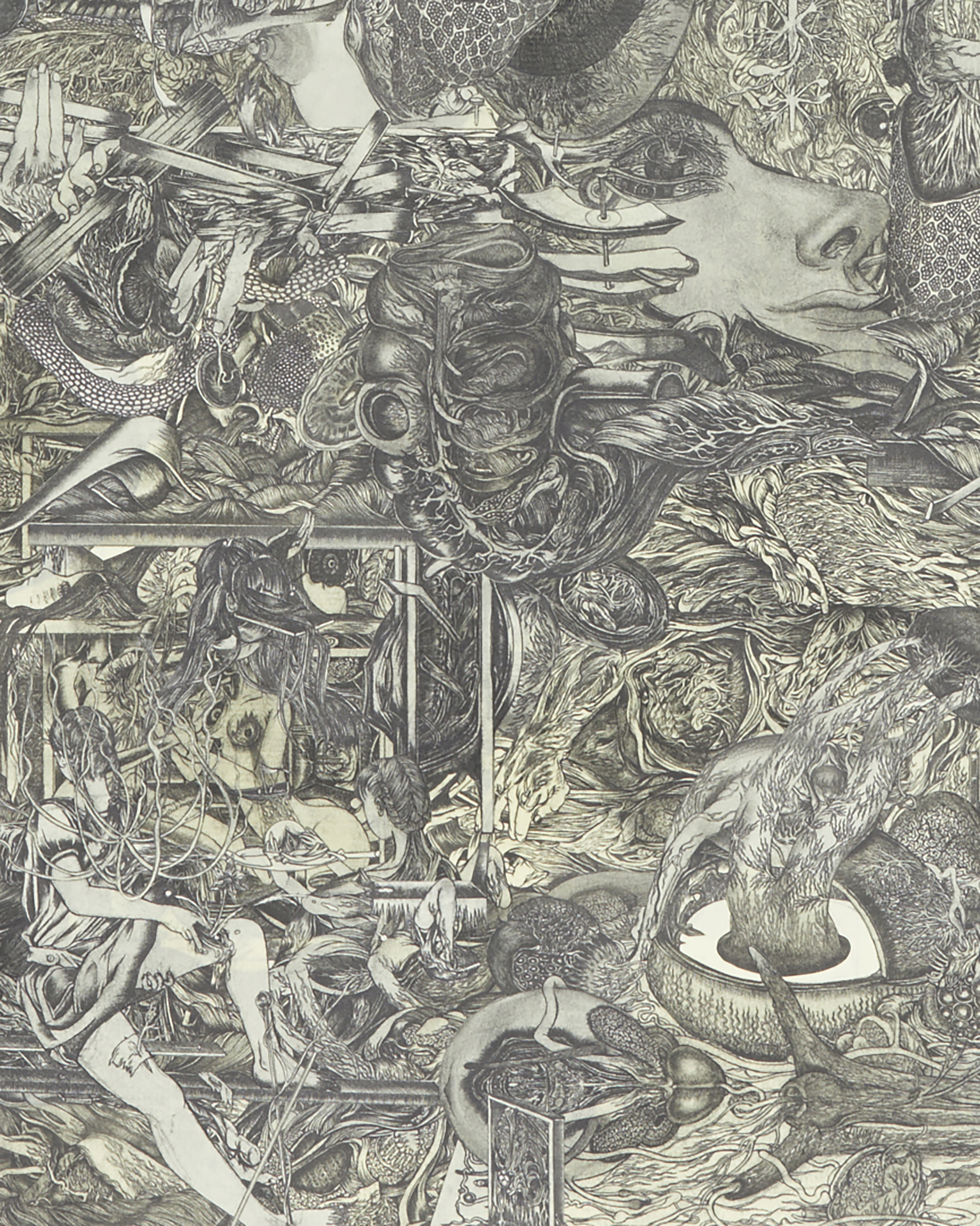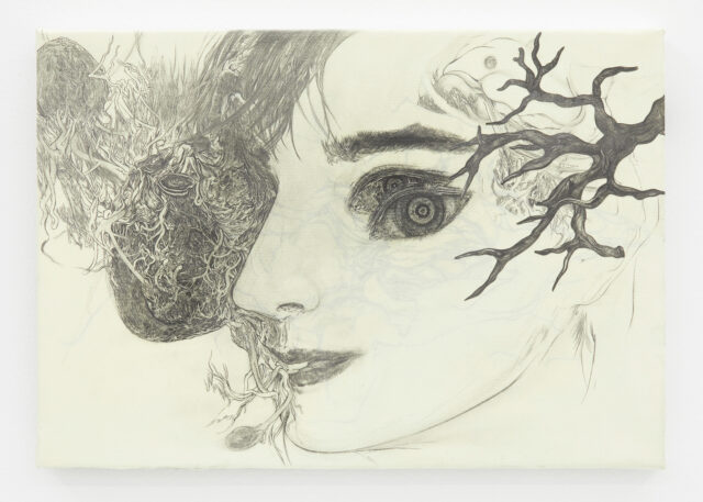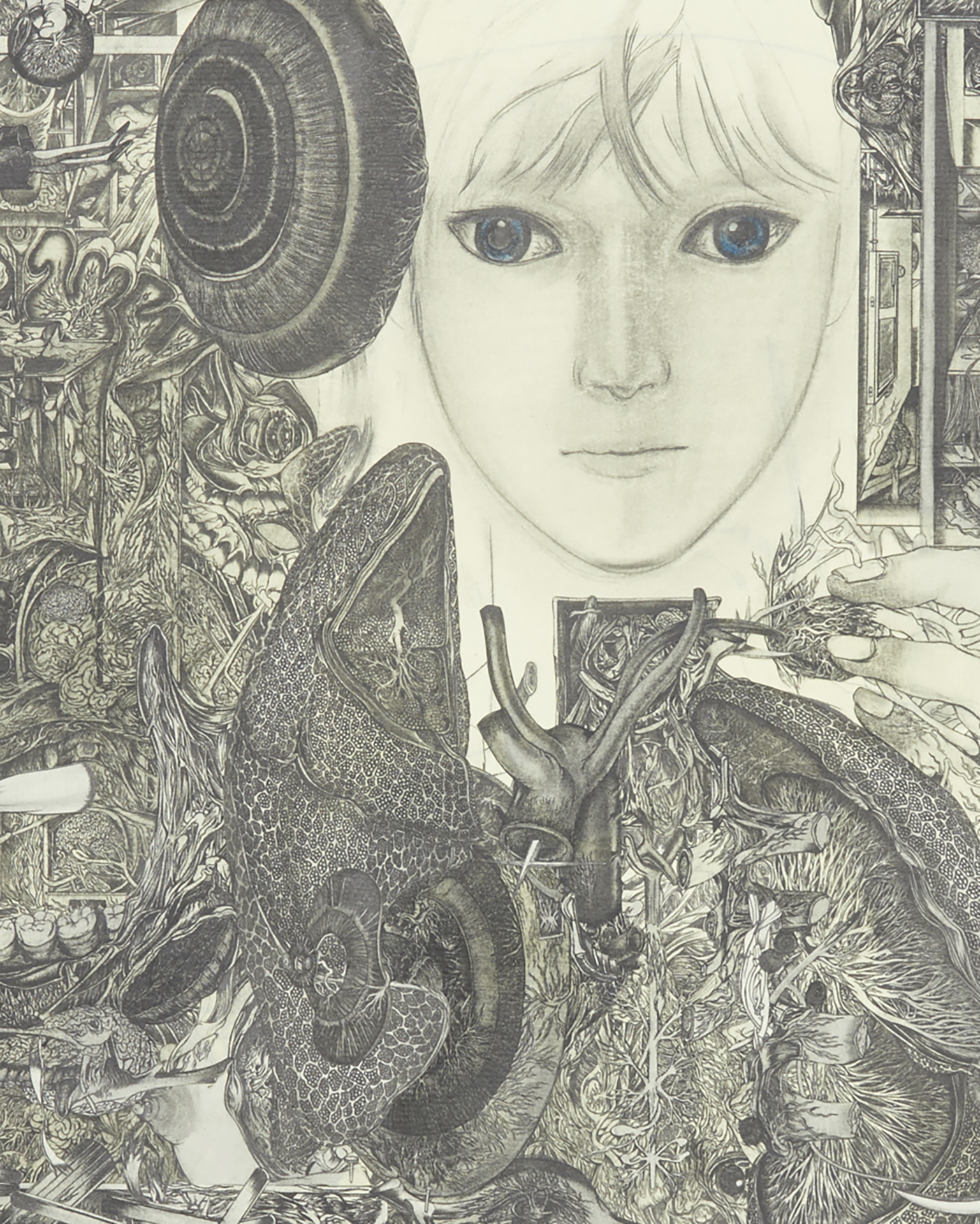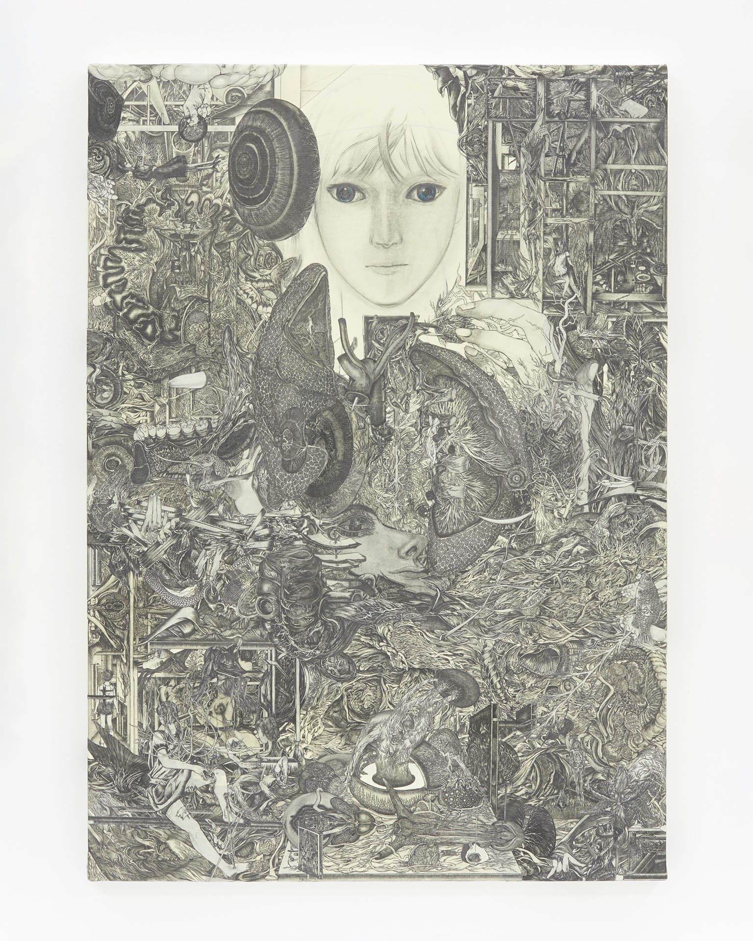 過剰、そしてオブセッショナルともいえるような、緻密な鉛筆の線描写。永遠に増殖し続けるかのように思える佐藤允のイメージは、描くことによって自らの存在、世界を捉えようとする作家の切実な試みを映し出しています。他人を理解することとはどういうことか、他人と心を繋がずに生きることはできるのか。これらの問いに突き動かされながら佐藤が描く、恋愛や性、生命、希望の溢れんばかりのエネルギー、そしてその一方にある不穏で深い闇、孤独、危うさ、恐れ。それらが調和し、あるいは不協和音を奏でながら、画面を埋めていきます。本展ではドローイングやコラージュに加え、近年取り組んでいるペインティングも展示します。