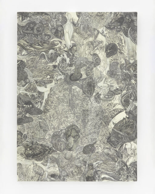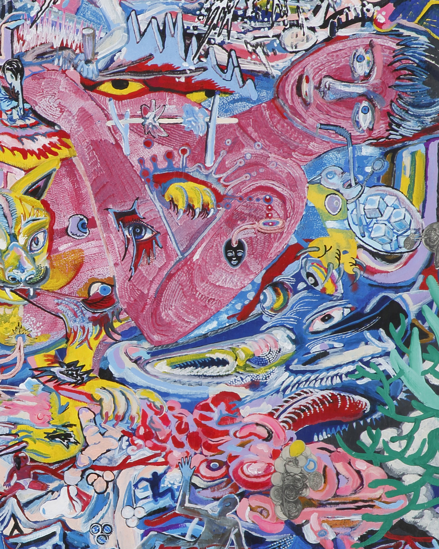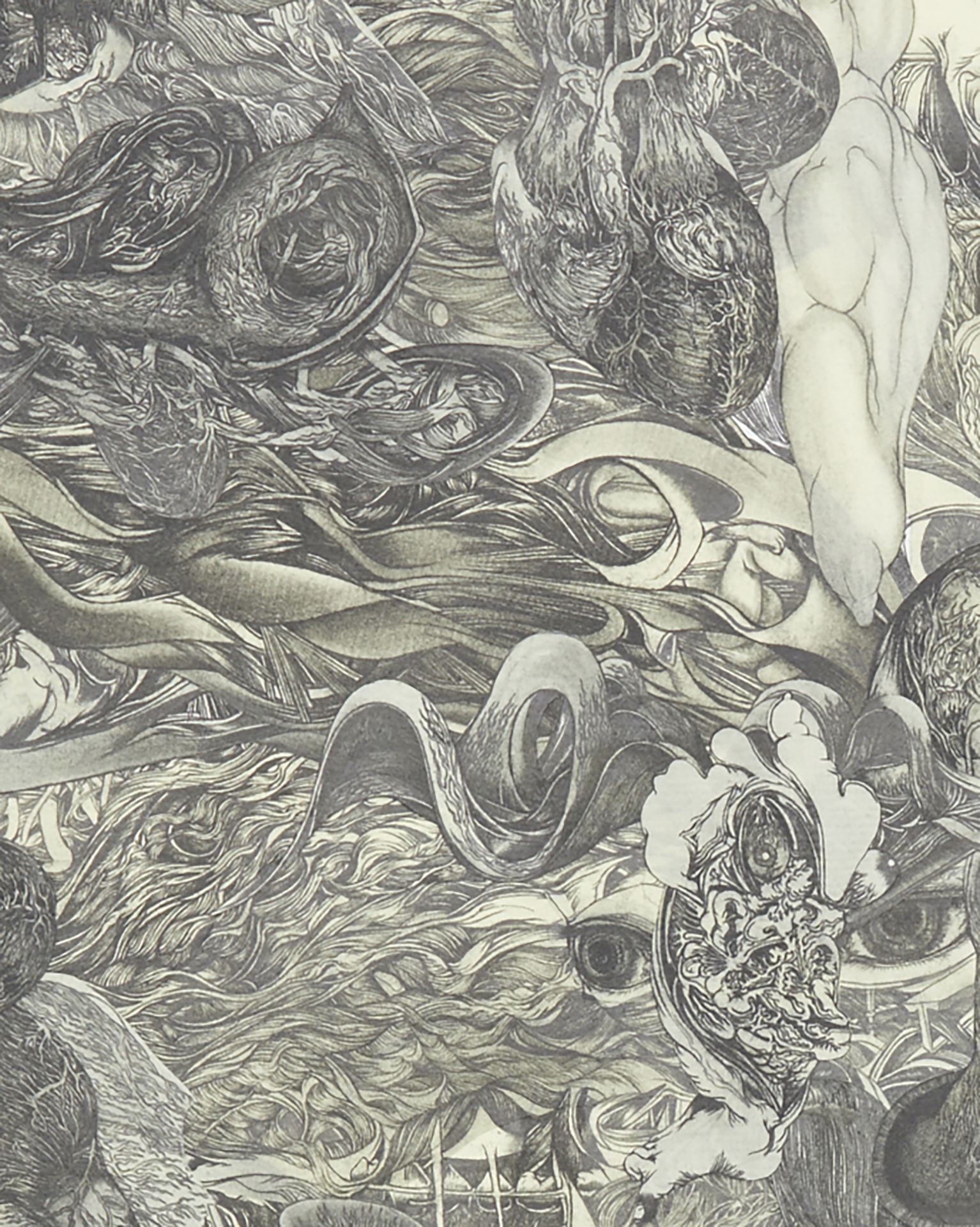 過剰、そしてオブセッショナルともいえるような、緻密な鉛筆の線描写。永遠に増殖し続けるかのように思える佐藤允のイメージは、描くことによって自らの存在、世界を捉えようとする作家の切実な試みを映し出しています。他人を理解することとはどういうことか、他人と心を繋がずに生きることはできるのか。これらの問いに突き動かされながら佐藤が描く、恋愛や性、生命、希望の溢れんばかりのエネルギー、そしてその一方にある不穏で深い闇、孤独、危うさ、恐れ。それらが調和し、あるいは不協和音を奏でながら、画面を埋めていきます。本展ではドローイングやコラージュに加え、近年取り組んでいるペインティングも展示します。