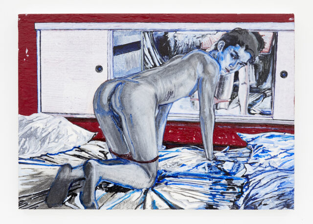 Acrylic, color pencil, pencil, ink, paper collage on panel
