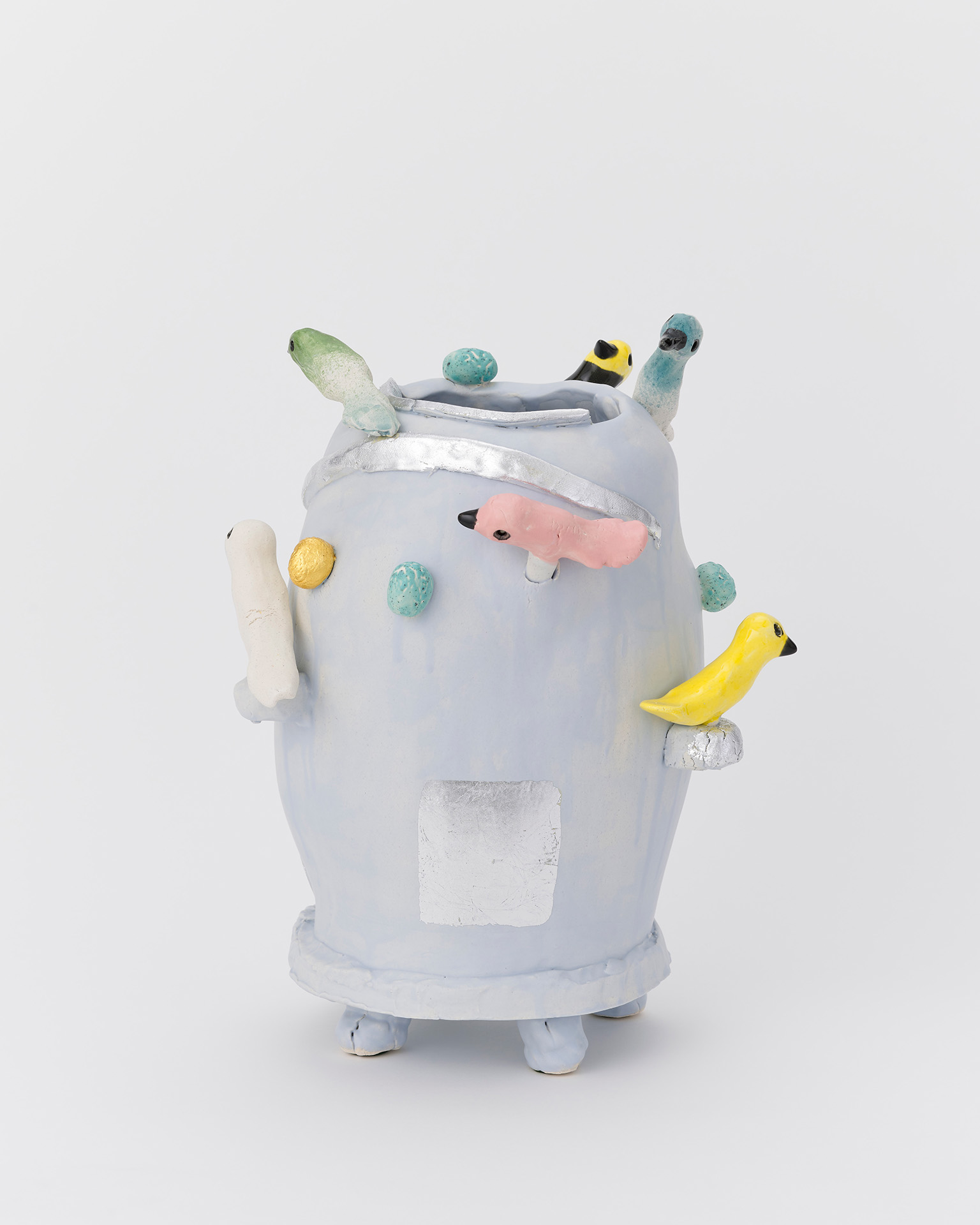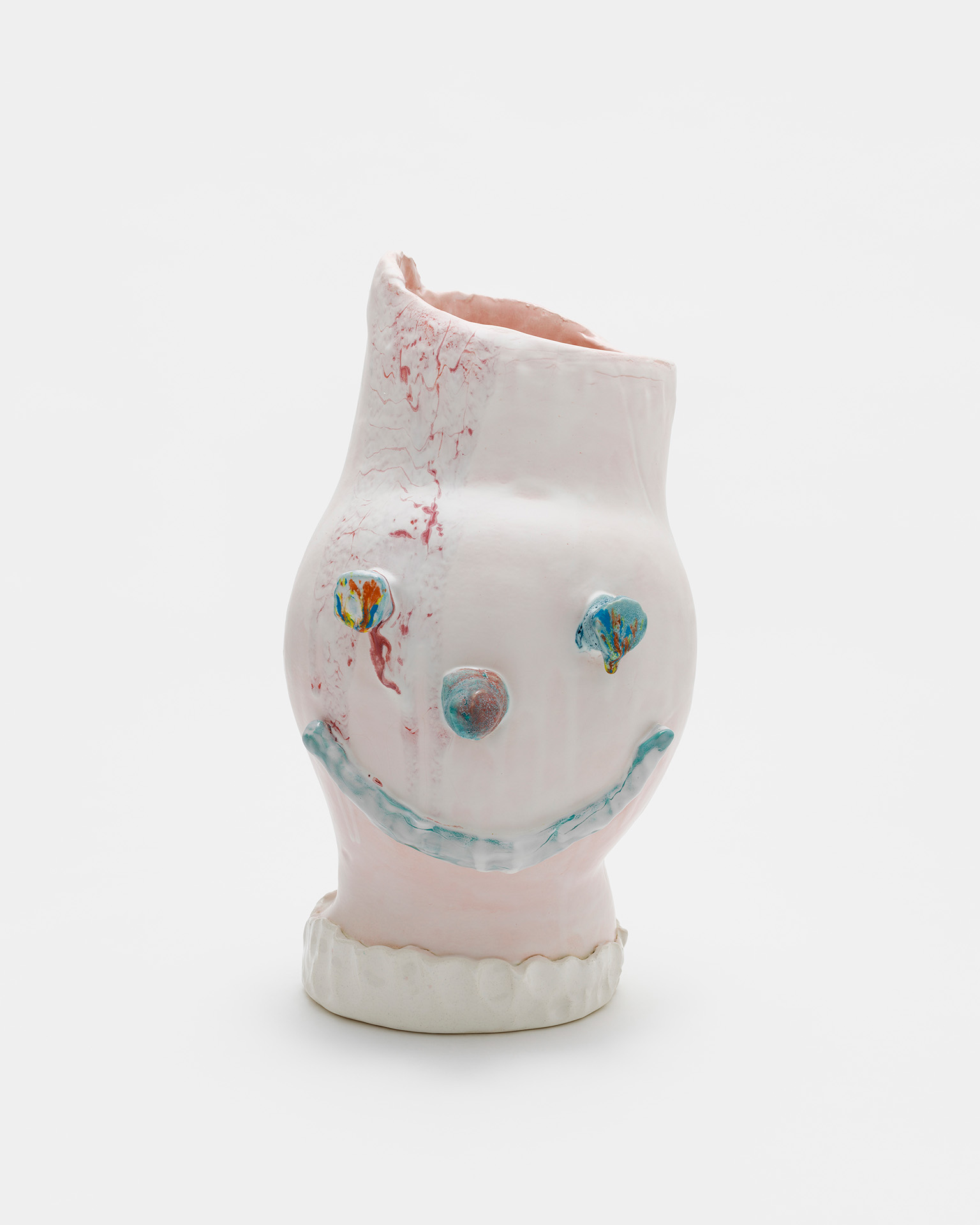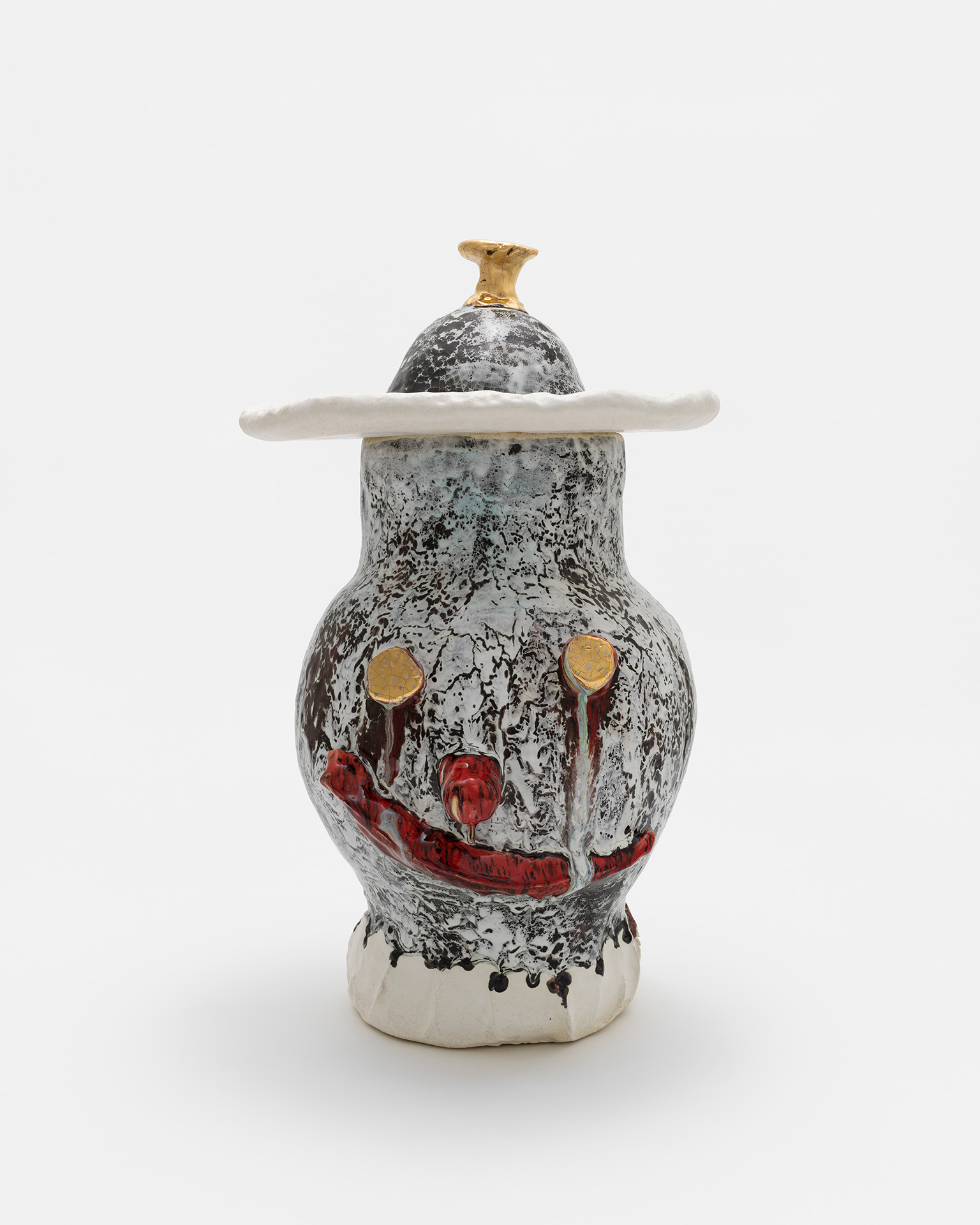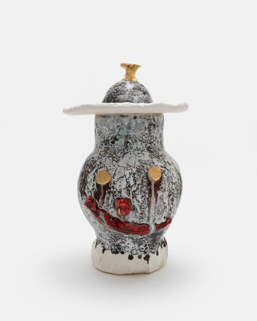 ダン・マッカーシーはその30年以上のキャリアにおいて国際的に作品を発表しています。ペインティングやドローイングといった平⾯作品と並⾏し制作しているのが、彼のアイコン的な作品である顔のモチーフのセラミックの彫刻作品《Facepot》シリーズです。その鮮やかな⾊合い、豊かな表情、親しみやすさ、プリミティブな感覚、作家の⼿の跡を感じさせる直接性。それらの要素があいまって、視覚的側⾯にとどまらない、⾝体あるいは感情に働きかけるような鑑賞体験を鑑賞者に与えます。