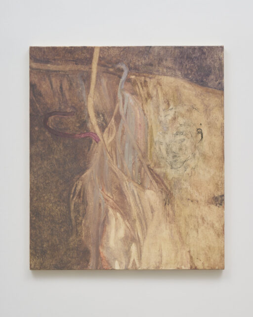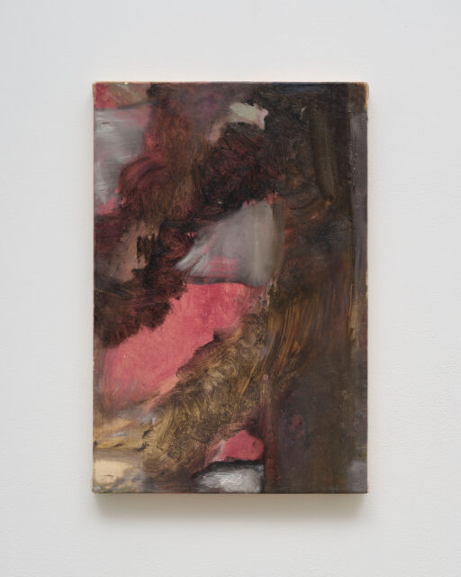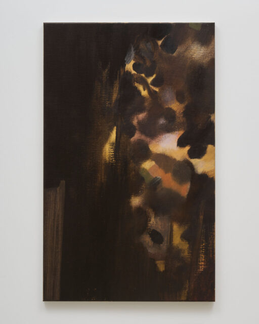 朝長弘人は、眼前のものがふと違って見える瞬間を捉え、それを絵画に起こそうとしています。前景と背景を交互に行き来したり、あるものを別のものとして解釈する際の視覚内の細かな移り変わり。これらは絵の具を重ね、拭い、跡を残していくという動作の繰り返しにも反映されています。作家の眼の中で起こる変化は、このように徐々に絵画における絵具の質へと変換され、画面に固定されます。自身に近しい対象を扱う朝長にとって、こうした運動は物理的、感情的な距離感を考察する場でもあります。描かれた絵画は固定されつつも再び動く予感を含んでおり、それは眼前の世界に対し作家自身が抱く寄る辺なさのあらわれでもあります。