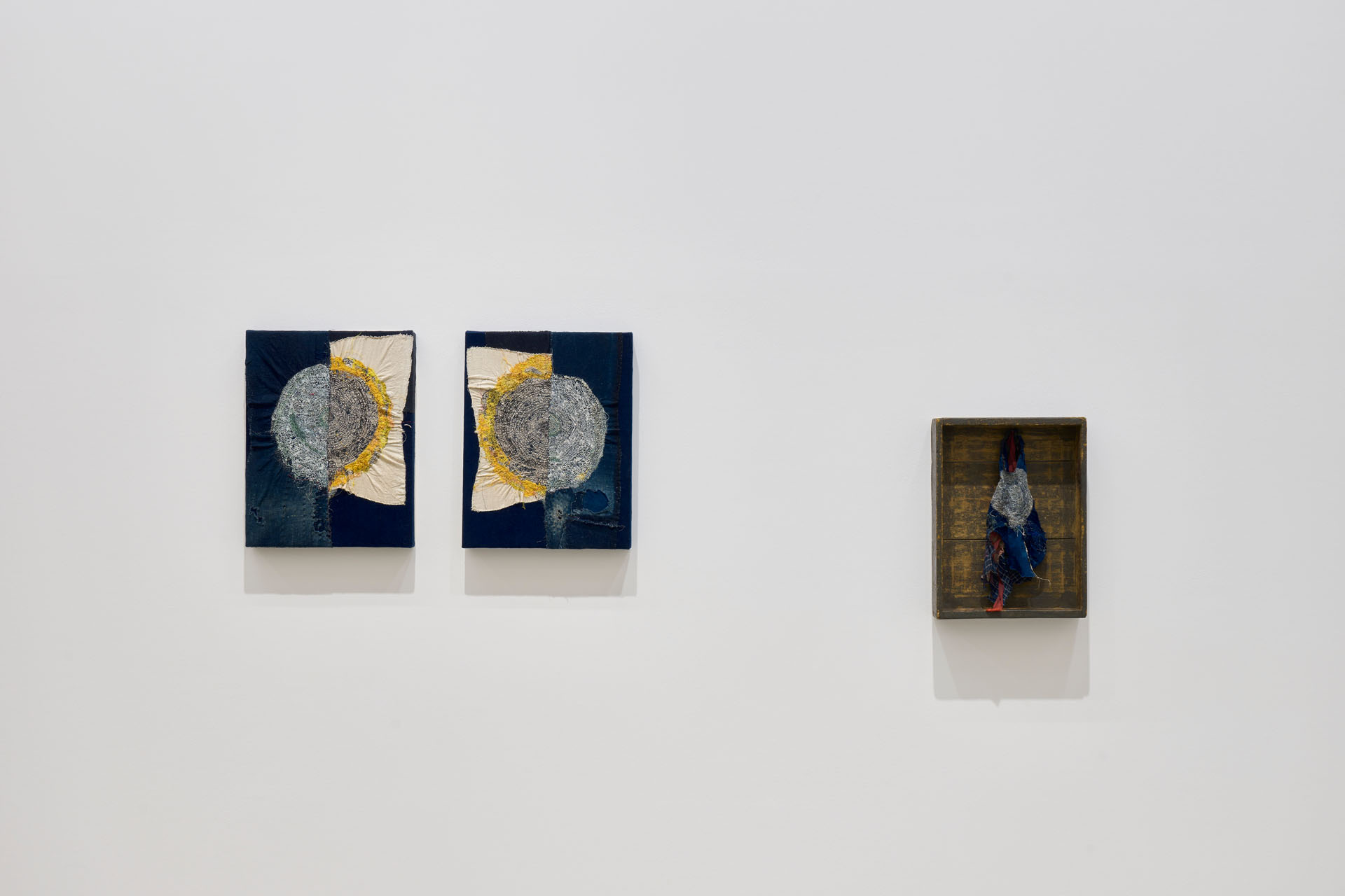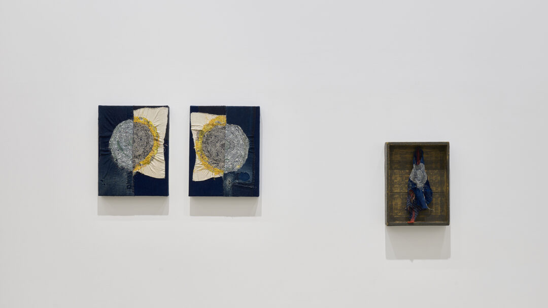 沖潤子は、生命の痕跡を刻み込む作業として布に針目を重ねた作品を制作しています。下絵を描く事なしに直接布に刺していく独自の文様は、シンプルな技法でありながら「刺繍」という認識を裏切り、観る者の根源的な感覚を目覚めさせます。古い布や道具が経てきた時間、またその物語の積み重なりに、彼女自身の時間の堆積をも刻み込み紡ぎ上げることで、新たな生と偶然性を孕んだ作品を生み出します。存在してきたすべてのもの、過ぎ去ったが確かにあった時間。いくつもの時間の層を重ねることで、違う風景を見つけることが制作の核にあります。