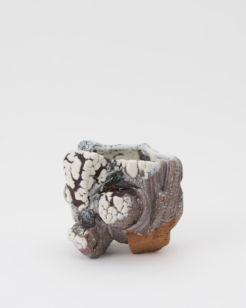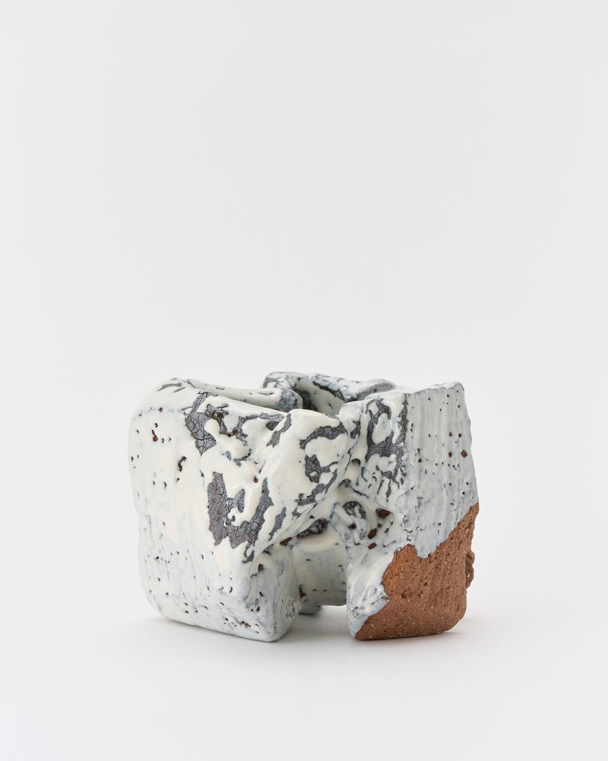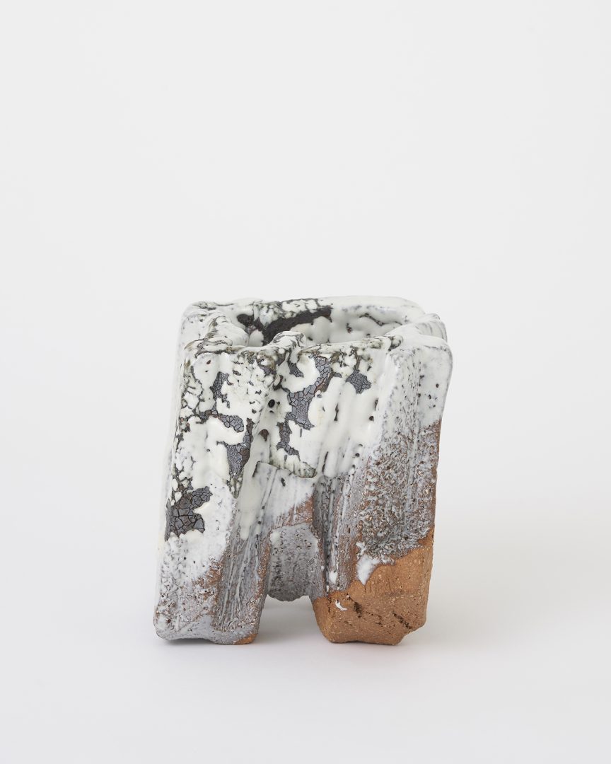 十三代 三輪休雪は三輪家伝来の白萩釉を用い、萩焼の伝統を継承しながらもダイナミックで斬新な造形を取り入れた作風で高く評価されています。十一代 三輪休雪(三輪壽雪)の三男として生まれ、1970年代にはアメリカ西海岸に留学し前衛的な陶芸の世界を肌で感じ、その自由な感性は、陶芸や美術全般への大胆で示唆に富んだアプローチに表れています。萩に戻り、現在の家督を継いでからも、その感性を育み続けています。刀で切り出した素焼きの土肌と萩釉を組み合わせたダイナミックで優美な作品は、自然の雄大な美しさと壮大なエネルギーや生命力を想起させ、国内外で魅了し続けています。