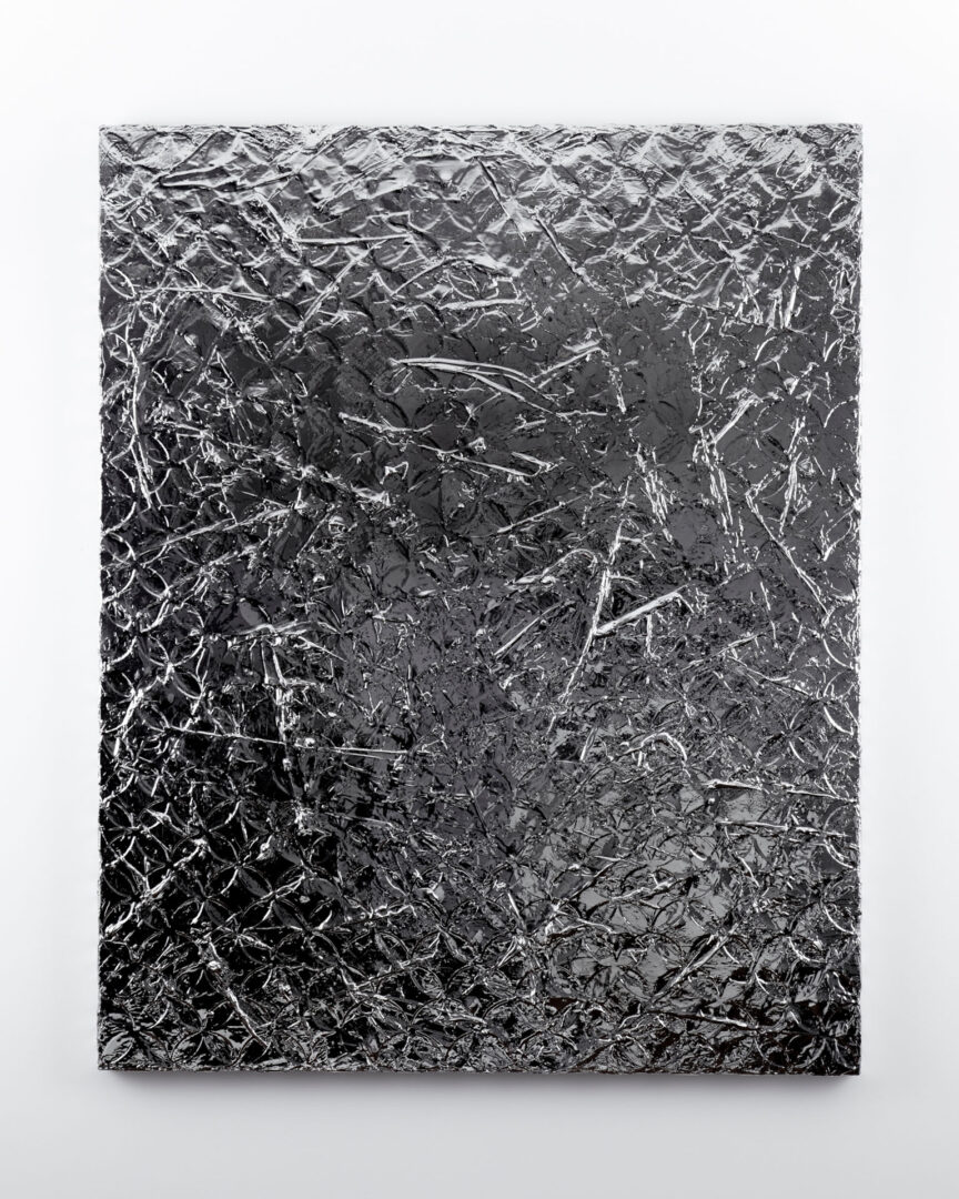 Silver coated, acrylic, leather on canvas mounted on panel / h.163.0 x w.131.5 cm