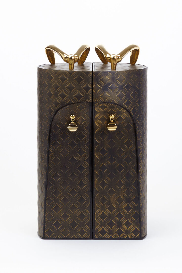 Dyed cowhide, metal fastener / h.45.5 x w.10.0 x d.21.5 cm each