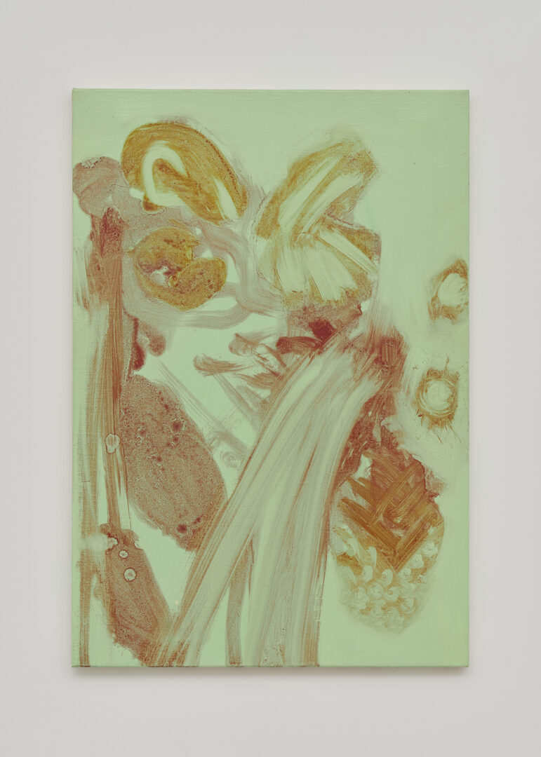 武田龍は、偶発的にできたシミや傷から喚起されるイメージを拾いながら絵画を制作しています。そこには彼が幼少期を過ごした田舎の森での経験や質が、視覚のみならず、聴覚や嗅覚、触覚を通して現れてくるといいます。また絵を描く行為をしばしば発掘に例える武田にとって、絵画は言語化することや分類することで失われてしまった無意識の領域をもう一度掘り起こす行為でもあります。