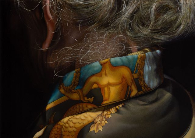 Presented in this exhibition will be three of Junko Oki’s embroidered works including her latest textile creation, along with Ataru Sato’s figurative paintings and photographs by Chikashi Suzuki, presented at the gallery for the first time.