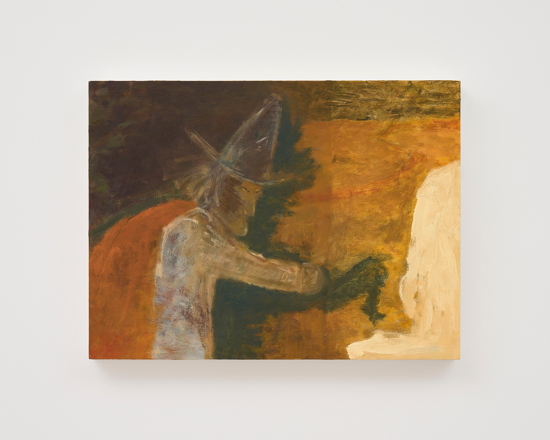 Tenki Hiramatsu’s paintings begin without specific motifs, and figures subsequently emerge from applying and reworking oil paint over weeks or months, rotating the work in 90° increments. Figures materialize from the depths of initially unrelated backgrounds and traces of brushstrokes, as abstract compositions and colors respond to one another. Hiramatsu describes his creative process as an exploration of existence without purpose.