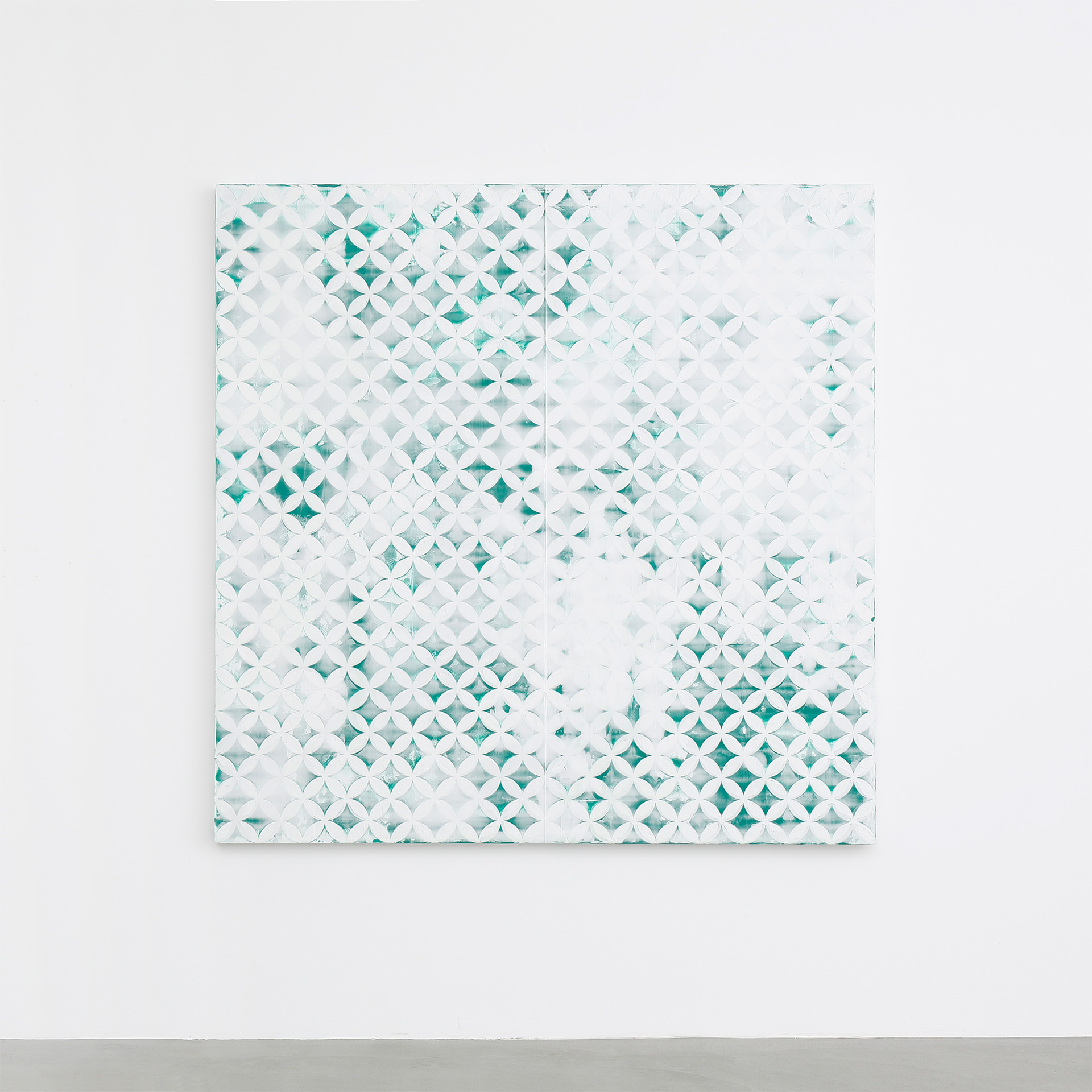 Acrylic, spray paint, aluminum paint on cotton mounted on panel