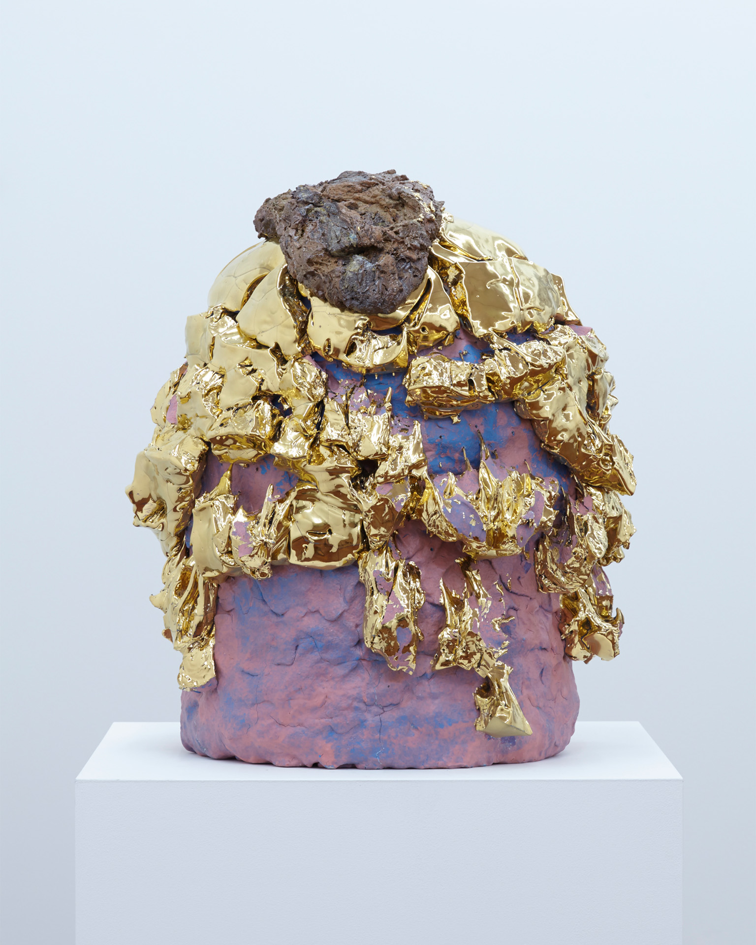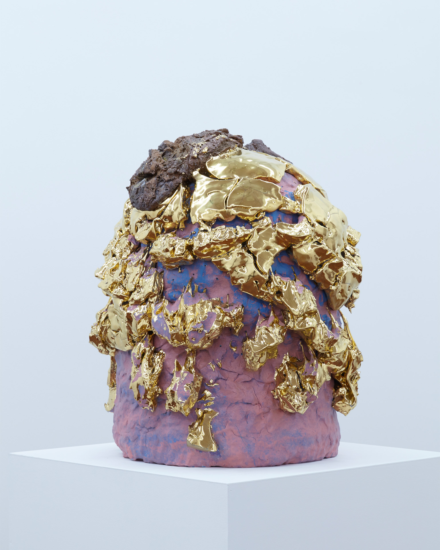 Porcelain, stone, glaze, pigment, gold, steel