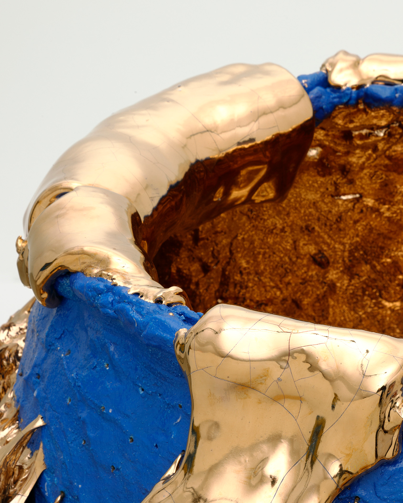 Takuro Kuwata’s unique and unparalleled works expand the boundaries of ceramic art. His visual language, a contemporary take on traditional Japanese ceramic techniques such as kairagi and ishihaze, has garnered international acclaim. Kuwata’s studio is situated at the heart of Japanese ceramic artistry in the Mino region of Gifu Prefecture, which retains techniques dating back to feudal Japan. Inheriting the traditional tea-ceremony aesthetic of wabi-sabi, his creations celebrate imperfect beauty and natural forms in the preservation of a rustic, unrefined elegance. Through dialogue with environment, history, nature, and time, Kuwata fuses together tradition and modernity, bringing into existence provocative works of art.