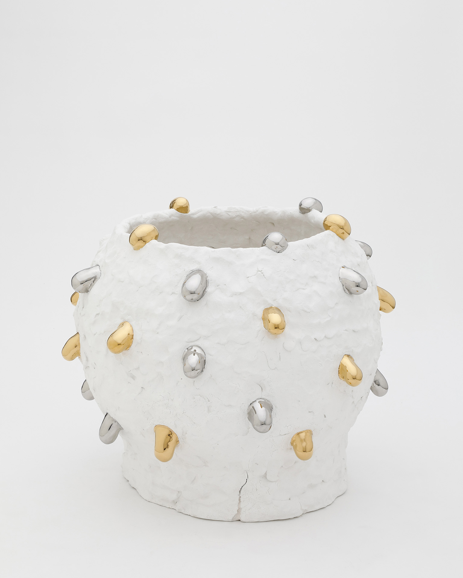 Takuro Kuwata’s unique and unparalleled works expand the boundaries of ceramic art. His visual language, a contemporary take on traditional Japanese ceramic techniques such as kairagi and ishihaze, has garnered international acclaim. Kuwata’s studio is situated at the heart of Japanese ceramic artistry in the Mino region of Gifu Prefecture, which retains techniques dating back to feudal Japan. Inheriting the traditional tea-ceremony aesthetic of wabi-sabi, his creations celebrate imperfect beauty and natural forms in the preservation of a rustic, unrefined elegance. Through dialogue with environment, history, nature, and time, Kuwata fuses together tradition and modernity, bringing into existence provocative works of art.