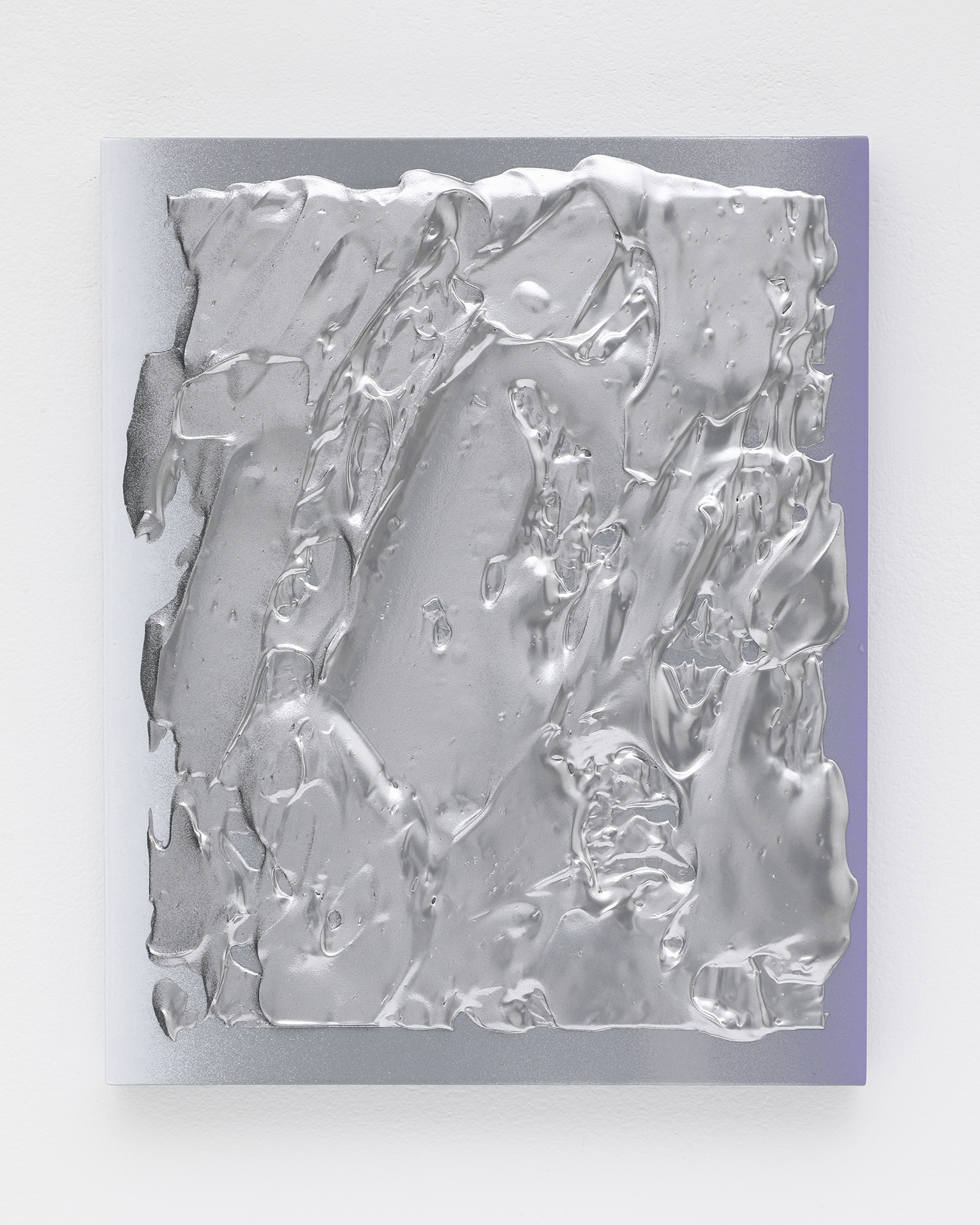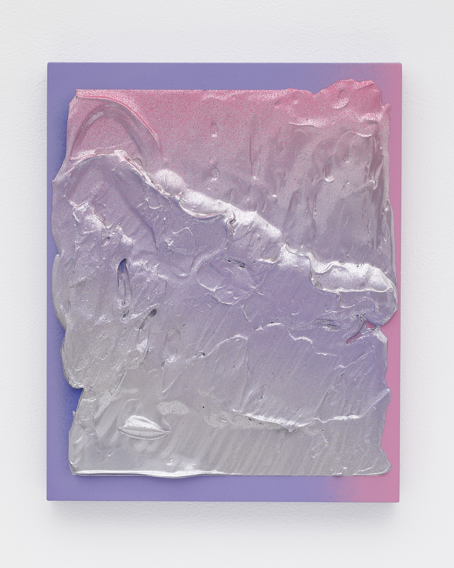 Acrylic, spray paint, aluminum paint on cotton mounted on panel