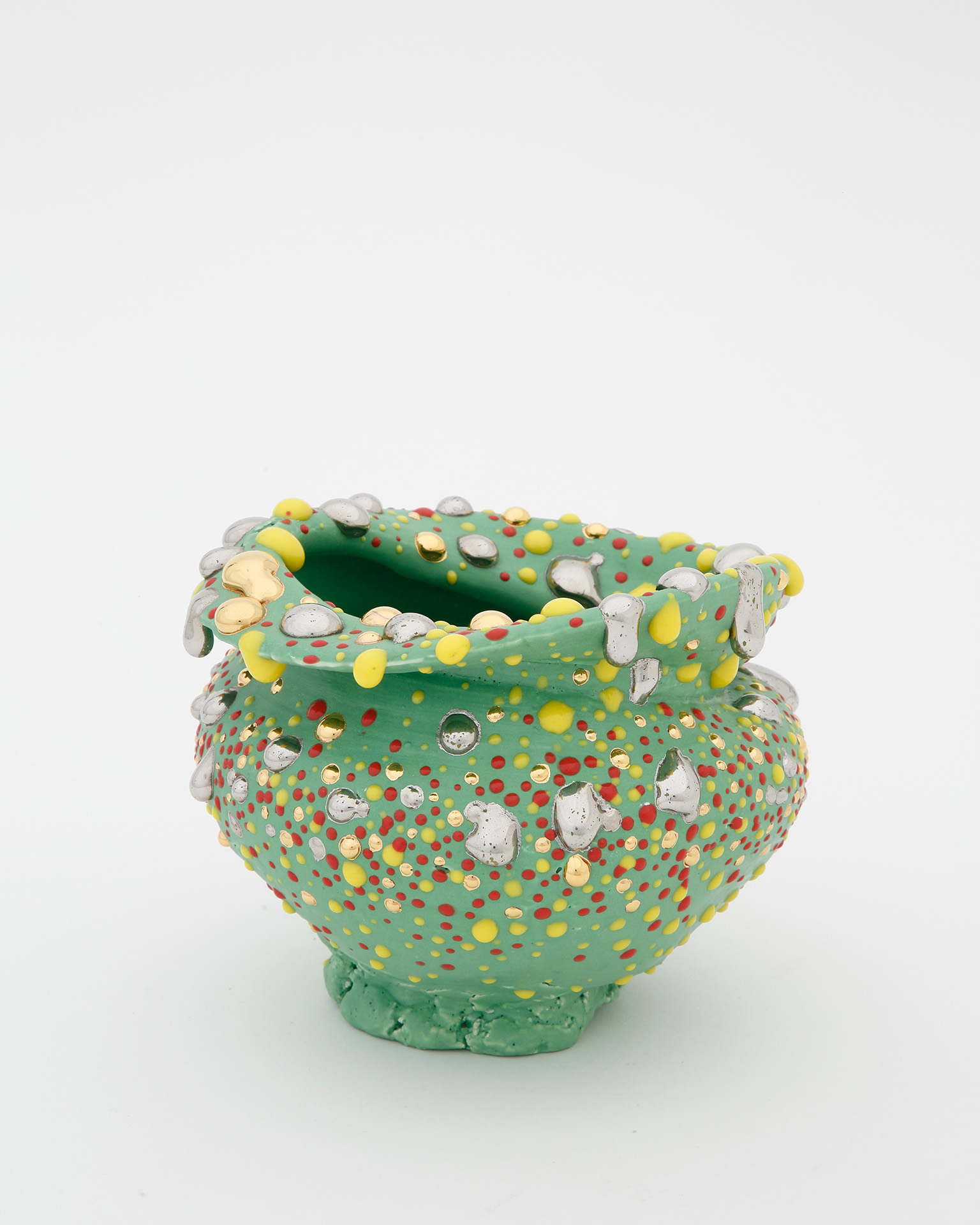Takuro Kuwata was born in 1981 in Hiroshima. He graduated from the Department of Fine Arts, Ceramic Arts, at Kyoto Saga University of Arts in 2001, and started studying under ceramic artist Susumu Zaima in 2002. He graduated from Tajimi City Pottery Design and Technical Center in 2007, and currently lives and works in Toki city, Gifu, Japan. He has held exhibitions in New York, Brussels, and London. His major group exhibitions include “Art Crafting towards the Future” (21st Century Museum of Contemporary Art, Kanazawa, Ishikawa, 2012), “Japanese Kōgei | Future Forward” (The Museum of Arts and Design, New York, 2015), and “Takashi Murakami’s Superflat Consideration on Contemporary Ceramics” (Towada Art Center, Aomori, 2017). His work has recently been shown in Frieze Sculpture 2017. His work is collected by many institutions including the Rubell Family Collection, the Palm Springs Museum, the 21st Century Museum of Contemporary Art in Kanazawa, Japan, and the University of Michigan Museum of Art. Kuwata also presents collaborative works including “Shangri-La Art Car by Takuro Kuwata with BMW i3”, a collaboration with Shangri-La Hotel Tokyo and BMW, in which a “Wrapping Car”, featuring Kuwata’s work is presented. Kuwata’s work is included in Vitamin C: Clay and Ceramic in Contemporary Art, published by Phaidon this autumn.