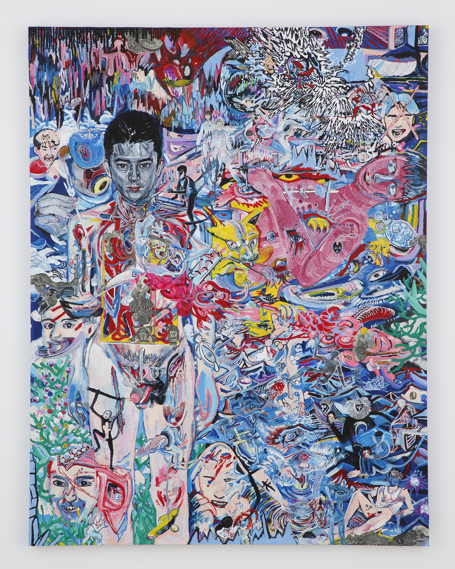 Sato is known for creating drawings with an excessive, and seemingly obsessive use of pencil lines. His imagery looks as if it proliferates endlessly, and represents the artist’s earnest attempt to capture the world and himself through the act of drawing. What does it mean to understand others? Can we survive without being connected with others? Driven by these questions, Sato depicts love, sex, life, and hope with overflowing energy. On the other hand, he also expresses a sense of unease and deep darkness, solitude, fragility, and fear. All of these fill his canvas with harmony or with dissonance. This exhibition features his drawings and collages as well as paintings that he has started creating in recent years.