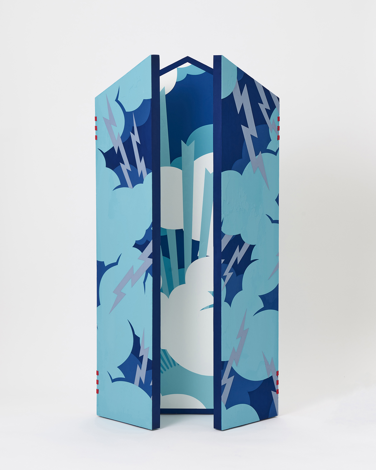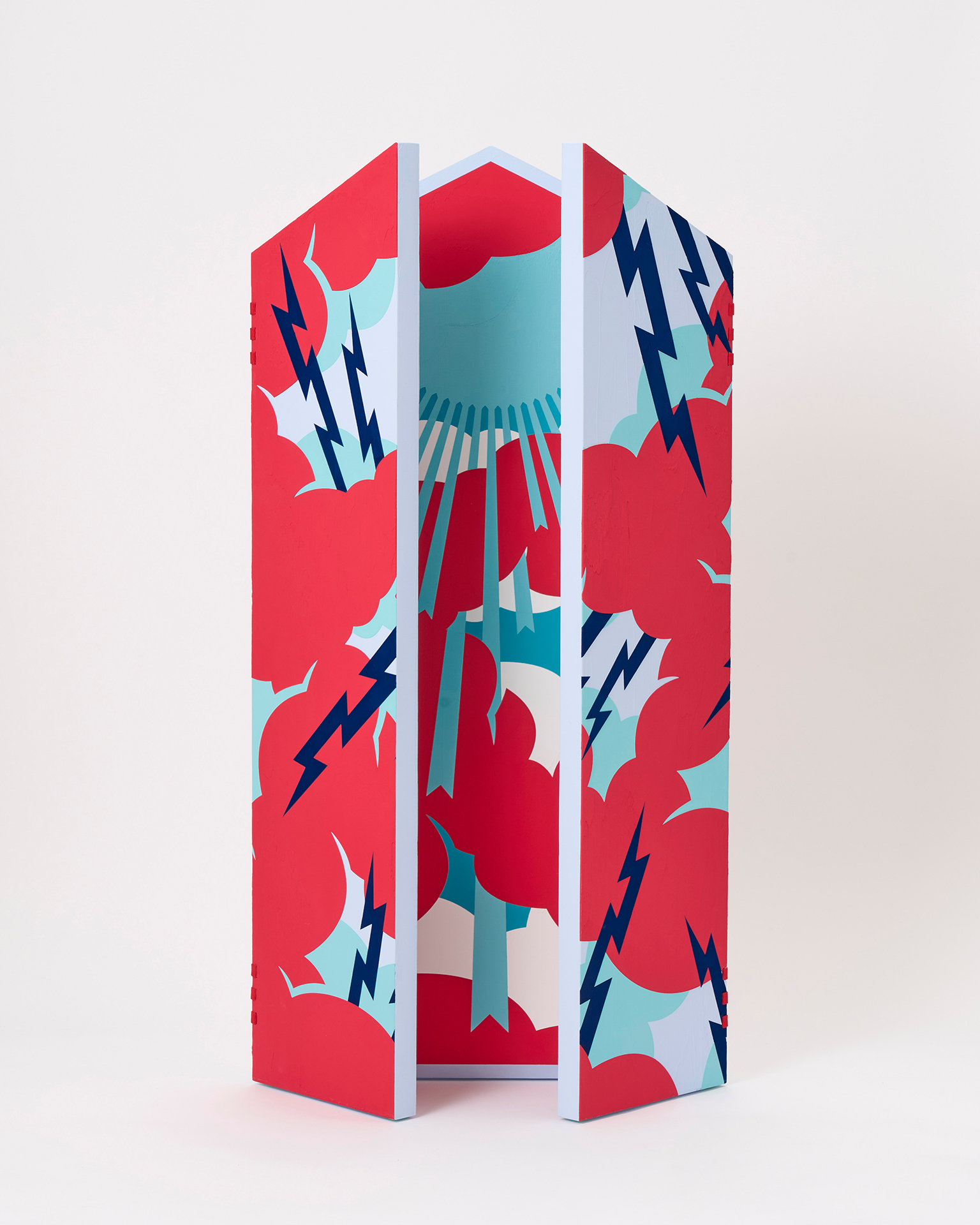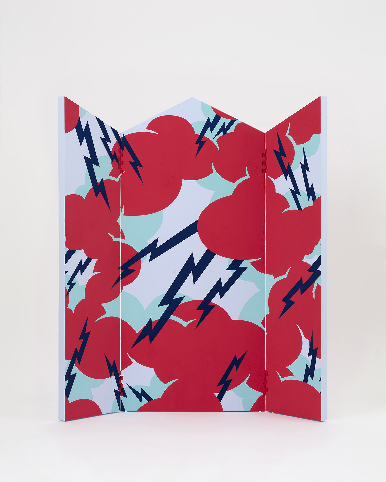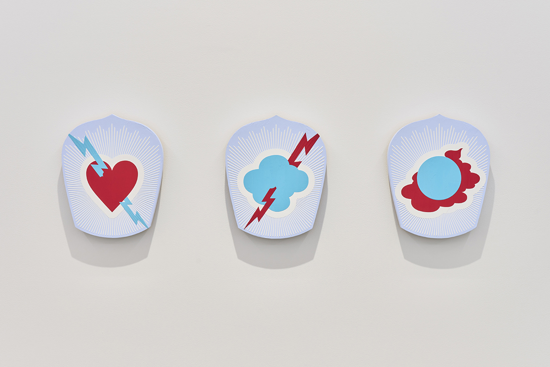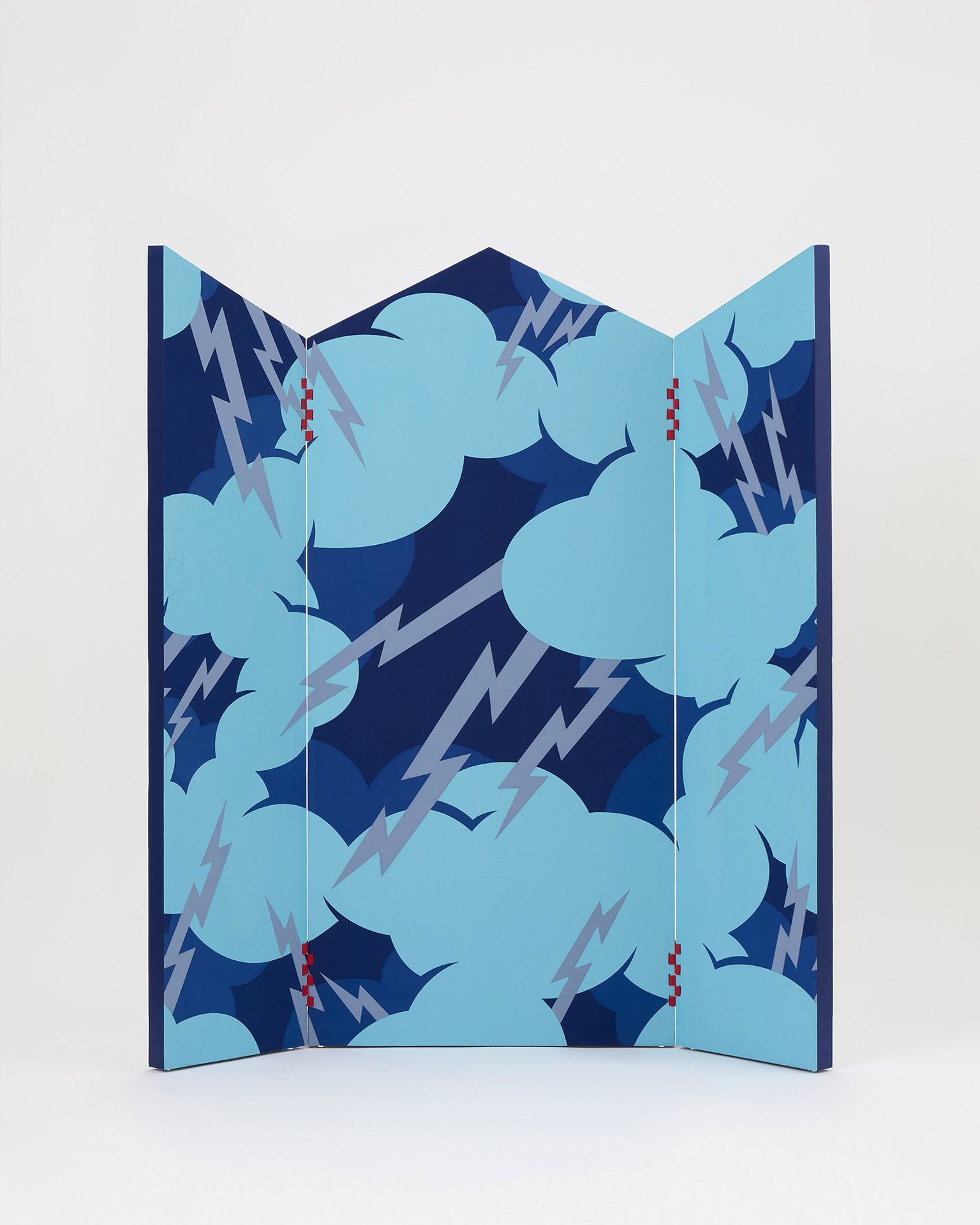 In this, the artist’s ninth solo exhibition with the gallery, Tatehana echoes past themes by presenting work that reflects on value systems drawn from an examination and re-interpretation of Japanese culture from a modern perspective. In particular, the central piece of the exhibition, “Descending Painting (Double Doors),” is a seigan triptych that focuses on the methodological concept of binary homogeneity and Shinto-Buddhist syncretism.