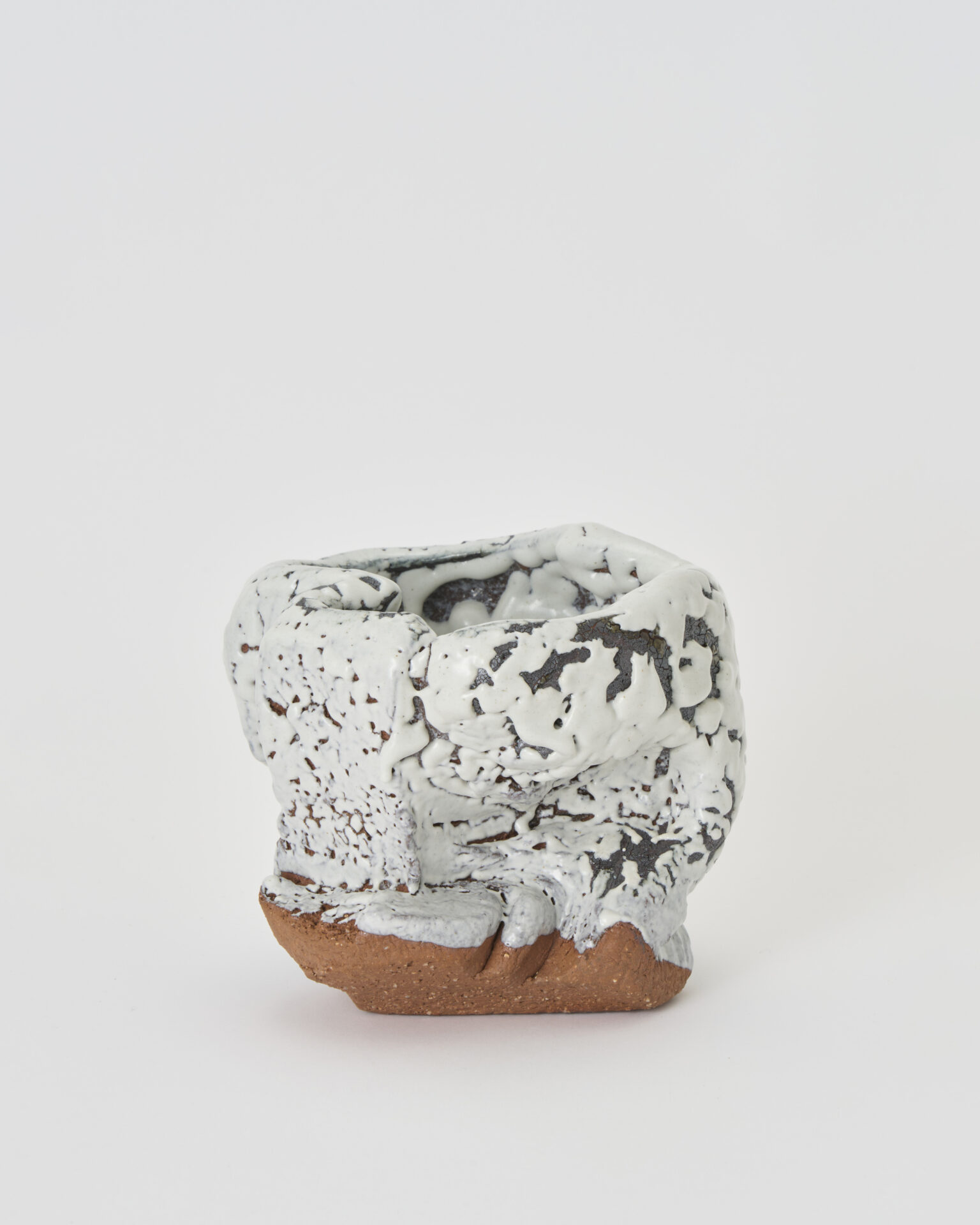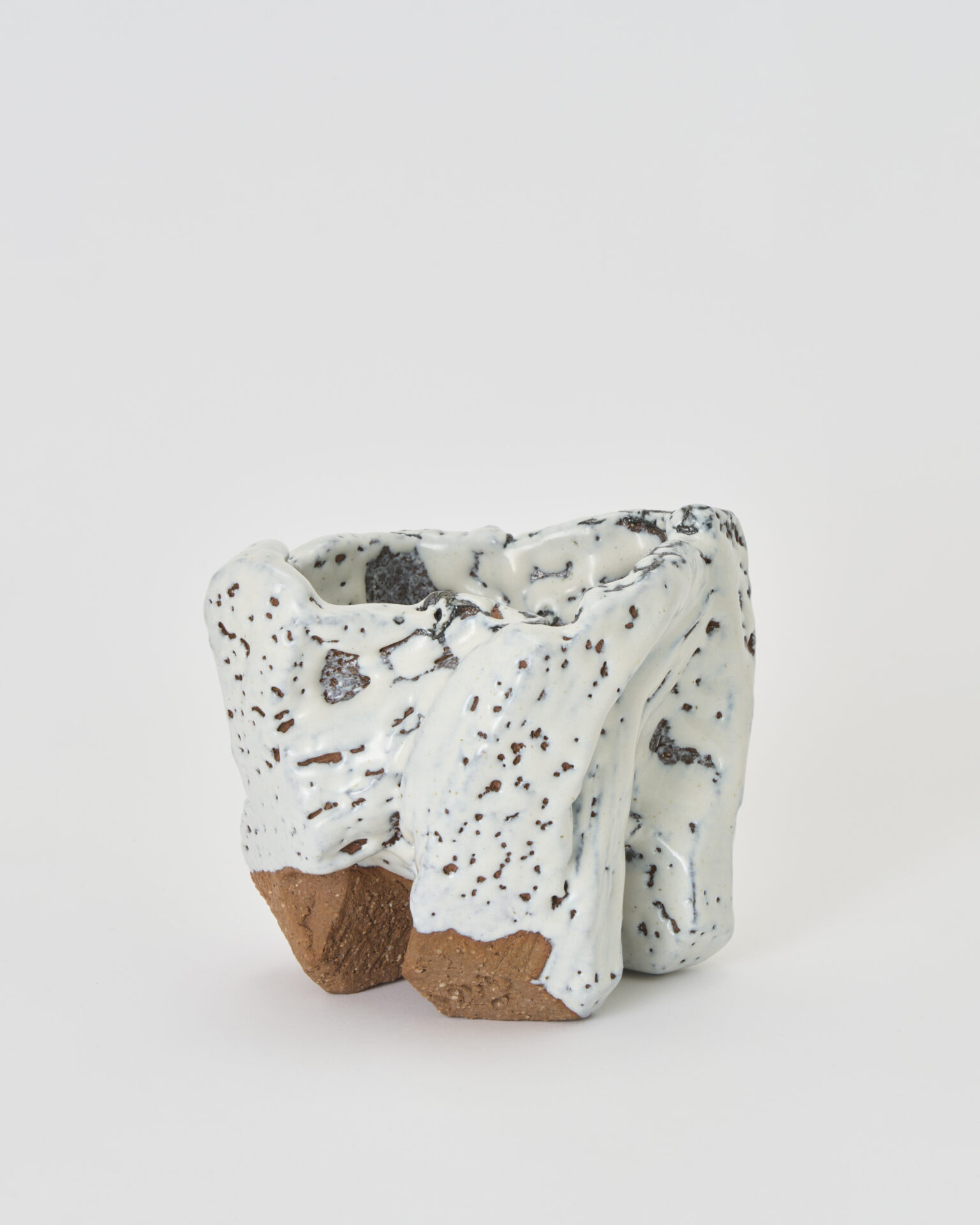 Miwa Kyusetsu XIII, born Miwa Kazuhiko, assumed the family title in 2019 and is highly acclaimed for his style that incorporates dynamic and innovative sculptural forms while carrying forward the legacy of Hagi ware. His “El Capitan” series of tea bowls highlights the contrast between the unglazed surface of the pottery cut out using a Japanese sword and the Miwa family’s traditional white Hagi glaze (Kyusetsu white). This series owes its primary inspiration to Miwa’s astonishment at encountering the enormous granite edifice of the same name at Yosemite National Park while studying in the United States, and his fascination with the severity, the fearfulness, and the gentleness of the vast continental landscape. “El Capitan” constitutes the merger of that inspiration with Hagi clay and ceramic traditions.