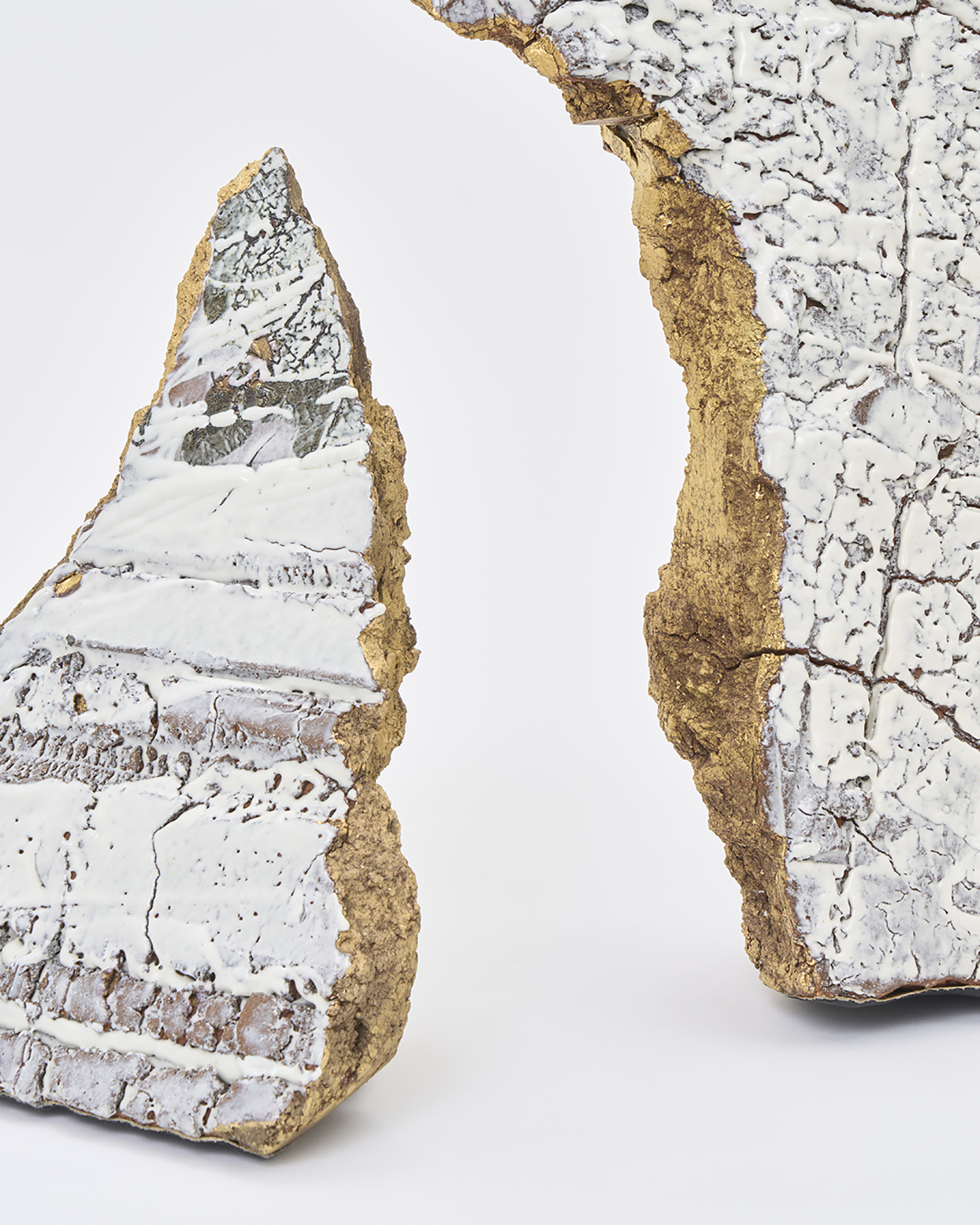 Since his return, he has continued to experiment with the possibilities of clay. At the core of his practice is a commitment to the transformation of clay, which he invariably treats as a part of the earth and therefore of life. Faced with the reality of how soil is a nurturing substance in the rice fields in front of his home, and of how it serves as a protective shelter in the walls and bricks of his house, he repeatedly questions our relationship to the elements provided by nature, and how much clay a single human being can move and shape in a meaningful way, whether the resulting object is with or without utility. The “El Dorado” series on view in the presentation is new work that revisits the artist’s experimentation with form and scale in his early work, while also representing his current answer to the question of what can be made from a piece of the earth. Referencing a mythical city of gold, the artist reflects on the way nature, itself a formidable force, can also awaken concealed sentiments that people can be at the mercy of, such as desire or greed.