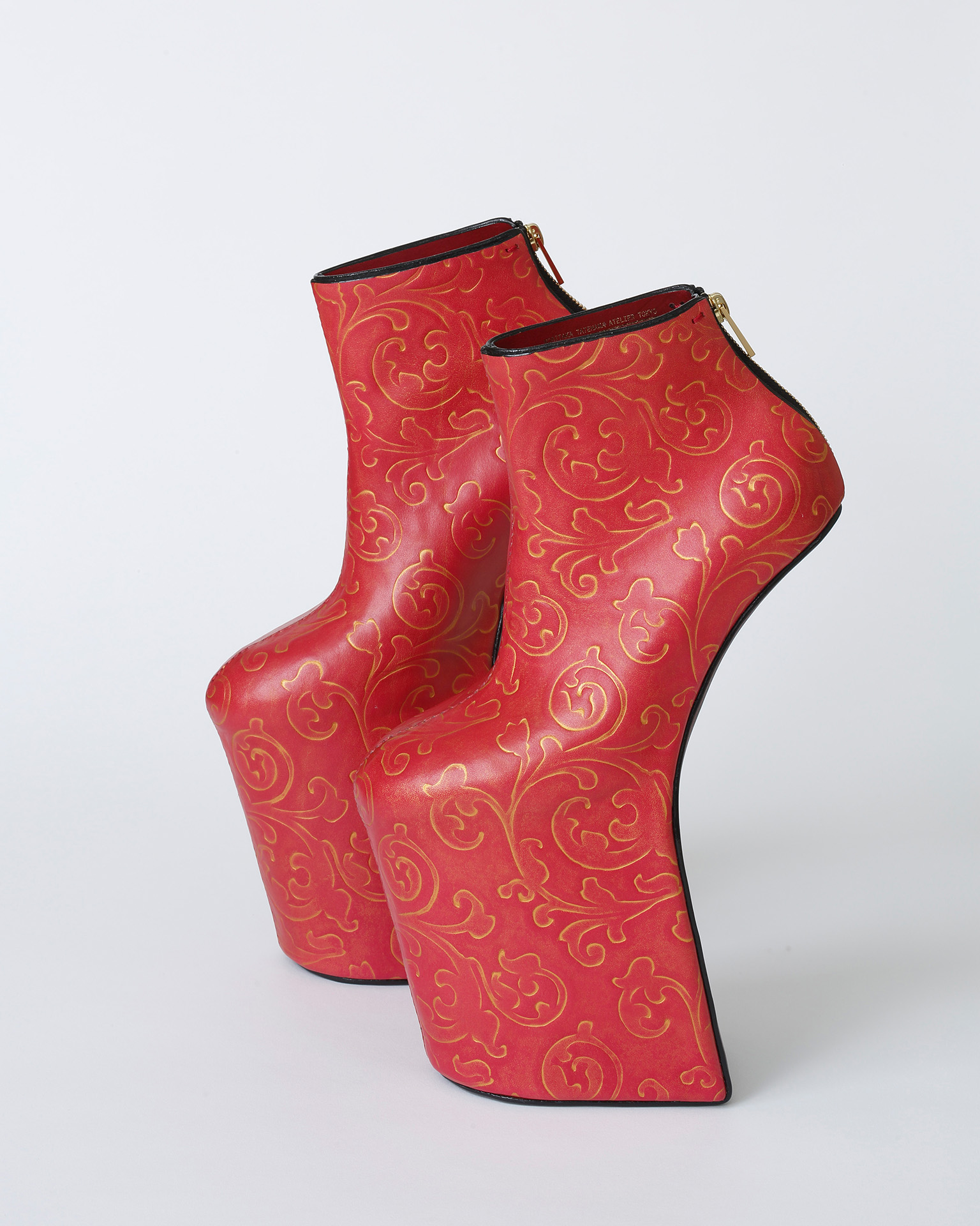 大学の卒業制作で発表し代表作となる「ヒールレスシューズ」がレディー・ガガの目にとまり、専属のシューメイカーとなったことで脚光を浴びた舘鼻則孝は、時代との相互関係で変化する自身を体現するような、多様な制作活動をしています。「古典と現代」を軸に、日本のアイデンティティ、文化的に価値のある部分と、現代の要素をコラボレーションさせることで、未来への道すじを表現します。