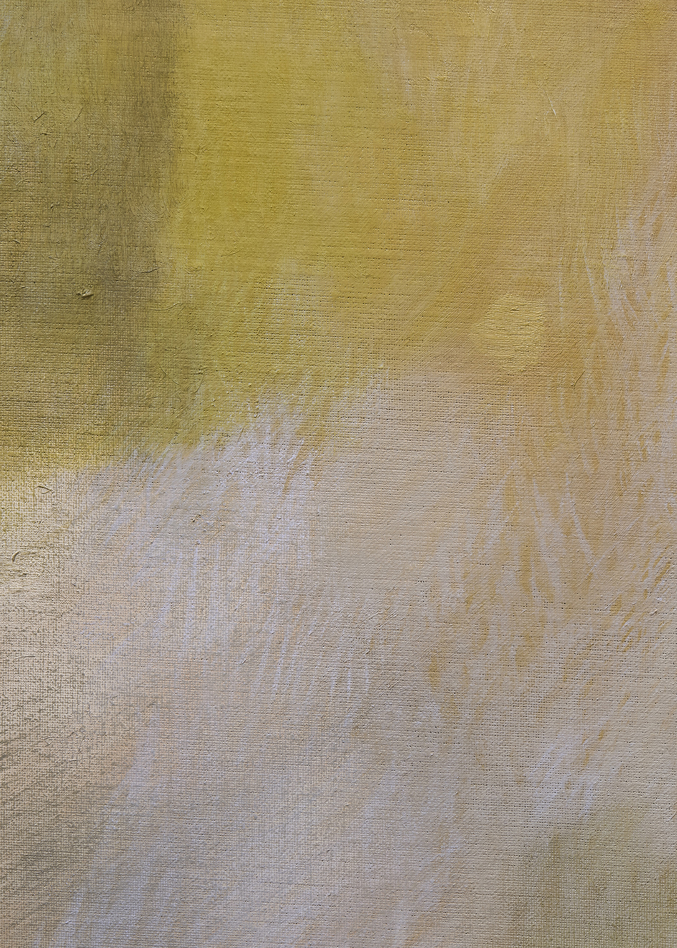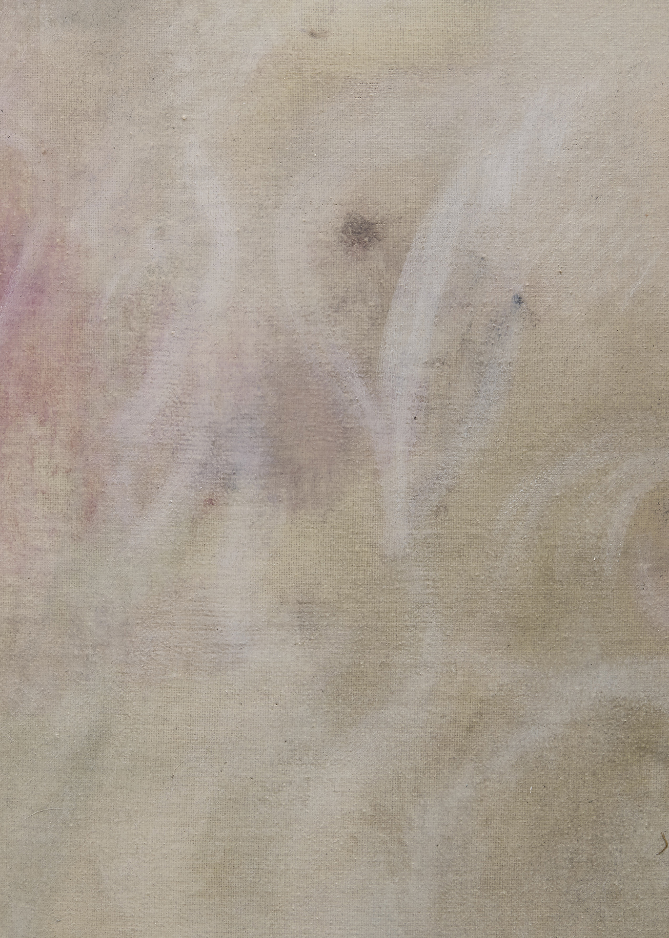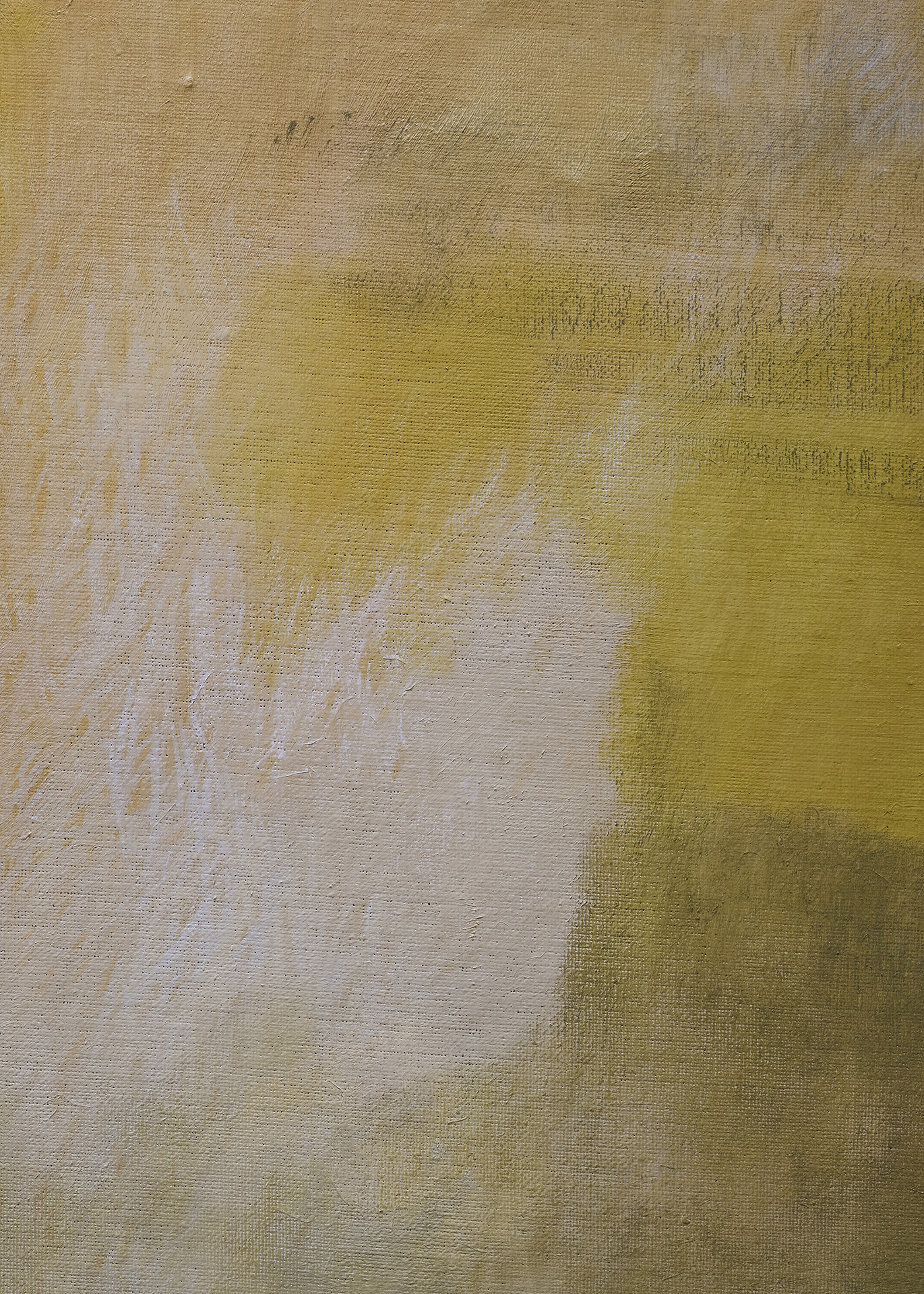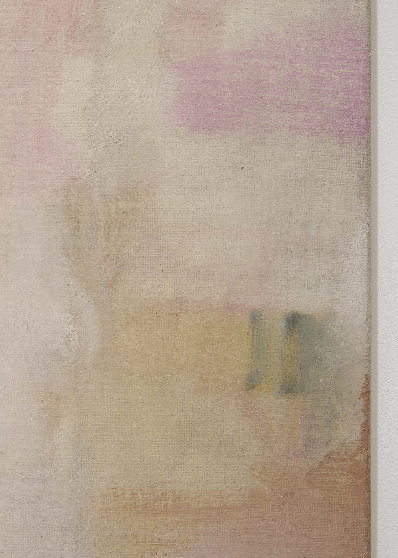 朝長の作品を近くで観ると、絵肌が独特なのがすぐ理解できます。 ヌルっとしていたり、ざらついていたり、強い拘りが感じられます。物理的な厚みはありませんが、筆で叩き上げたり、絵具を練り込んだり重ねたりしながら、深みのある絵肌が生まれています。画面の上で脈を打ち、呼吸しているような生々しさがあり、どこか消滅に向かうような印象も受けますが、決してささやかではありません。作品を実際に観ることで、画面で観る以上にその強さを感じるでしょう。