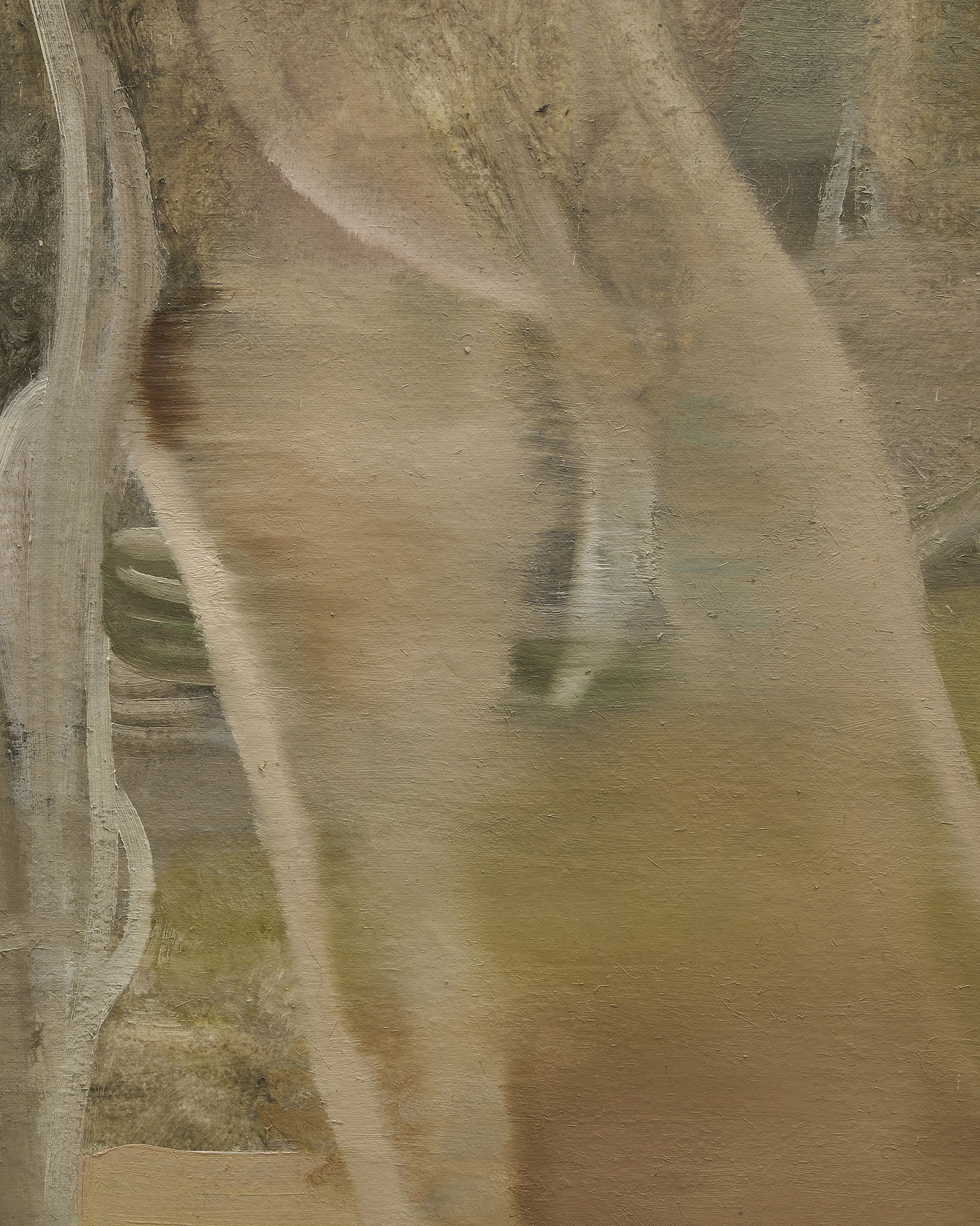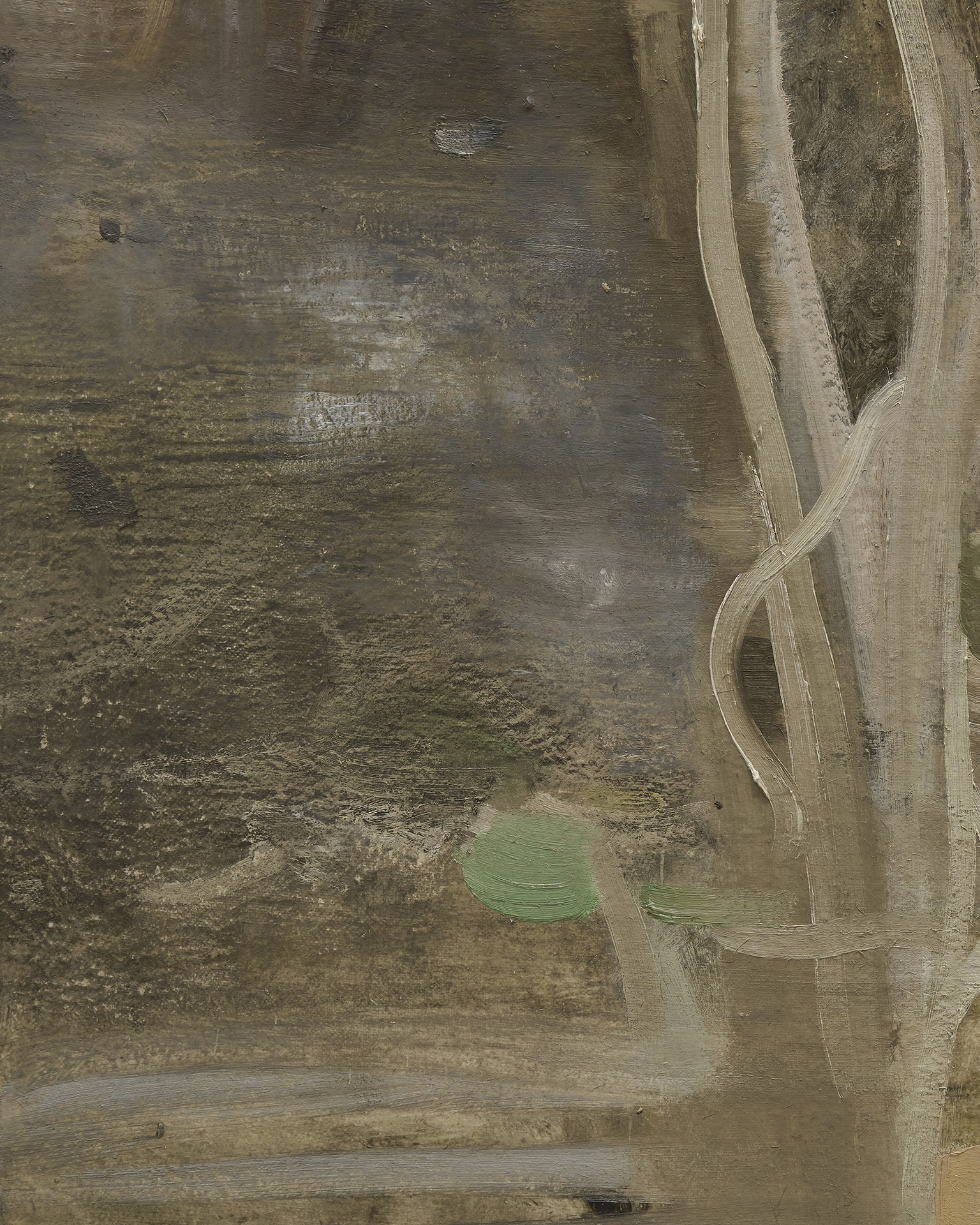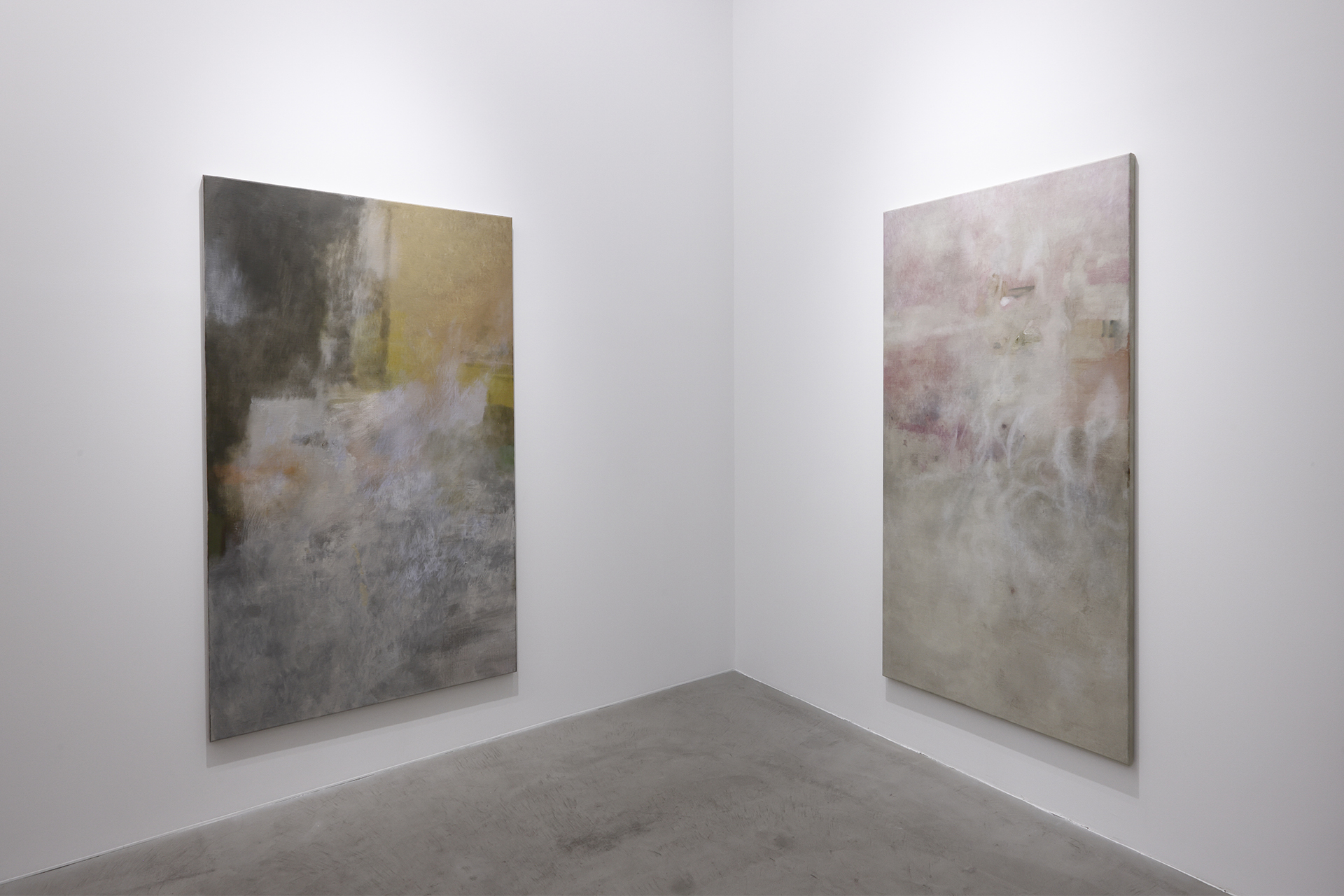 朝長は、眼前のものがふと違って見える瞬間を捉え、それを絵画に起こそうとしています。作家の眼の中で起こる変化は、徐々に絵画における絵具の質へと変換され、画面に固定されます。描かれた絵画は固定されつつも再び動く予感を含んでおり、それは眼前の世界に対し作家自身が抱く寄る辺なさのあらわれでもあります。