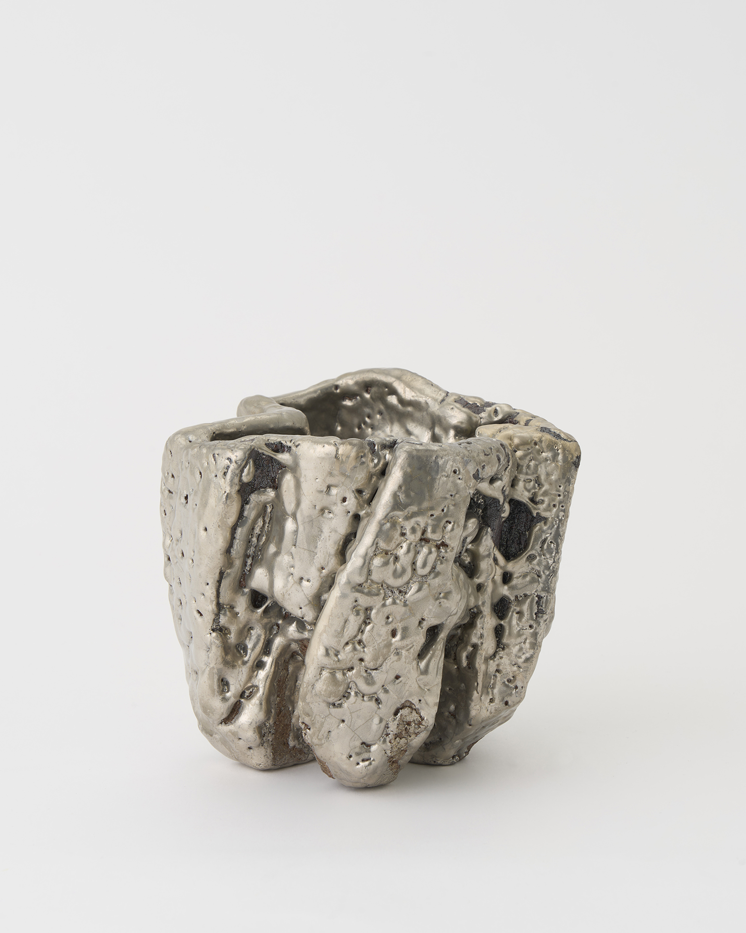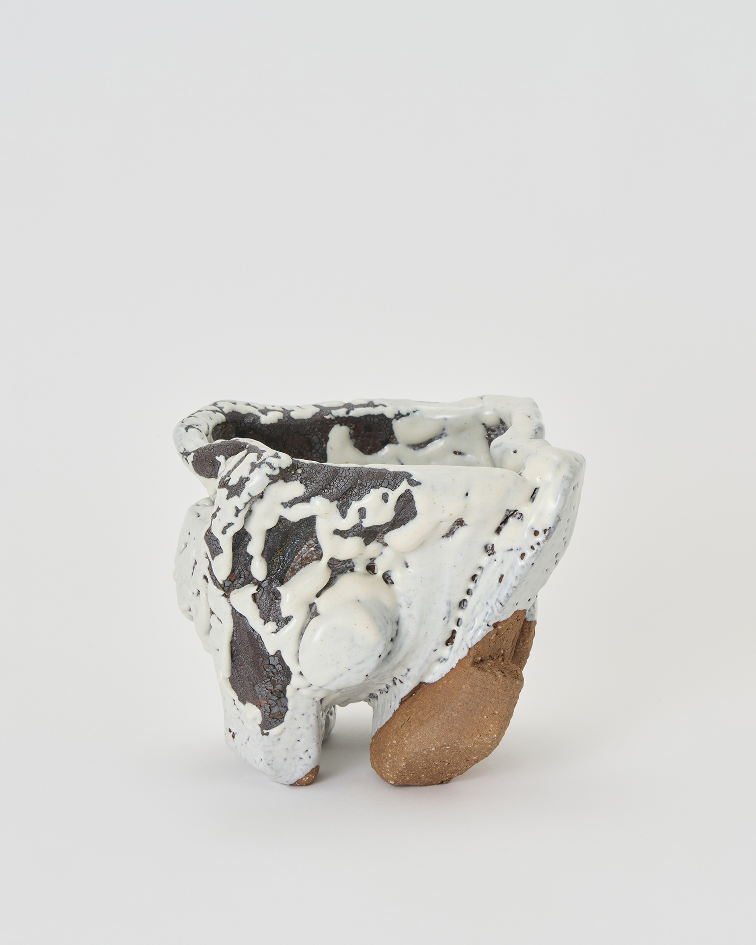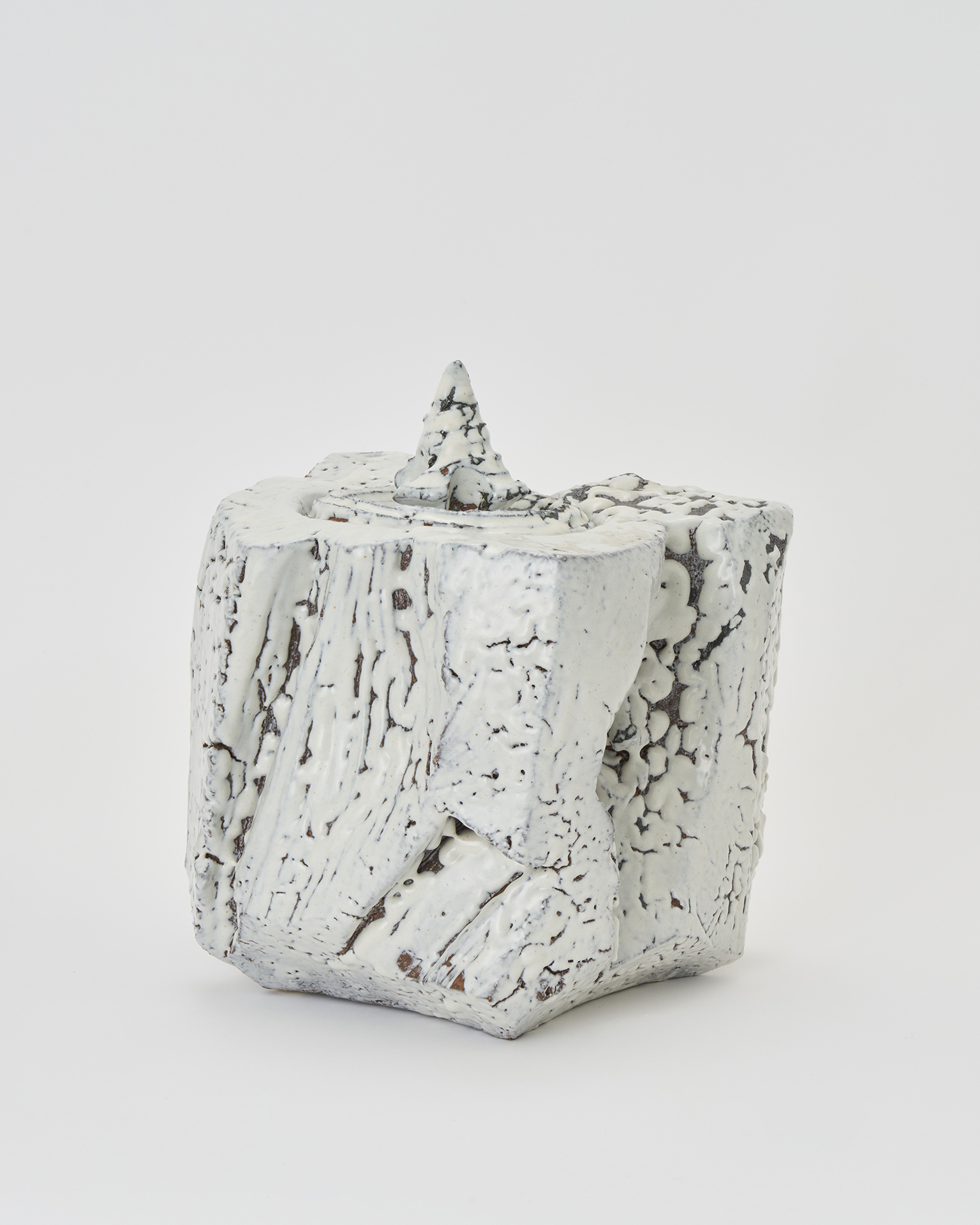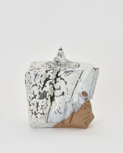 2019年に三輪家当主として十三代 休雪を襲名した三輪休雪は、三輪家伝来の白萩釉を用い、萩焼の伝統を継承しながらもダイナミックで斬新な造形を取り入れた作風で、国内外で高く評価されています。刀を使って斬り出した土肌と三輪家伝来の白萩釉(休雪白)のコントラストで迫る茶碗《エル キャピタン》シリーズは、米国留学時代にヨセミテ国立公園で見た巨大な花崗岩などから得たインスピレーションと広大な大陸の風景の厳しさ、恐ろしさ、そして優しさへの畏怖の感覚を、萩の土、そして陶芸の伝統と統合して作られています。