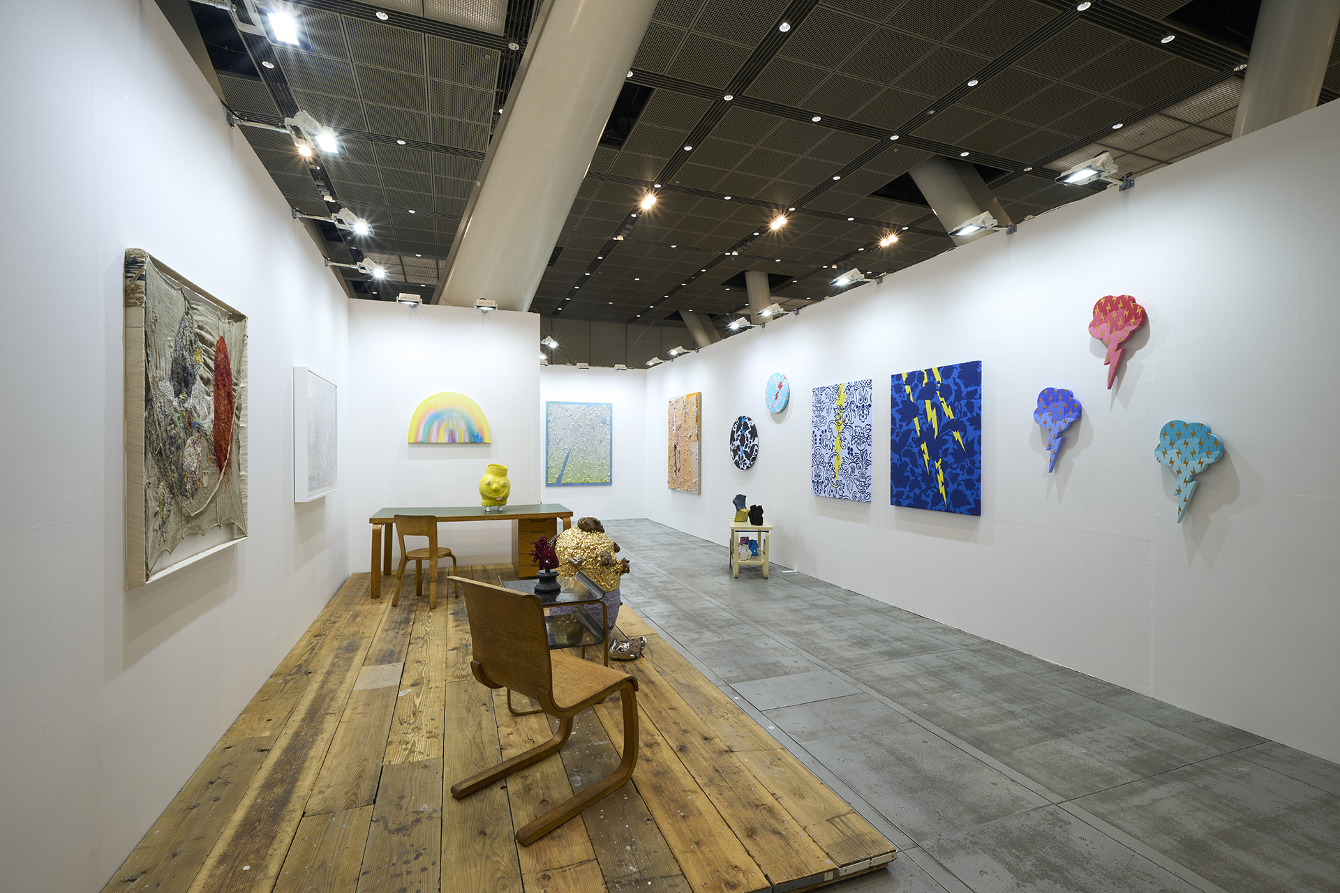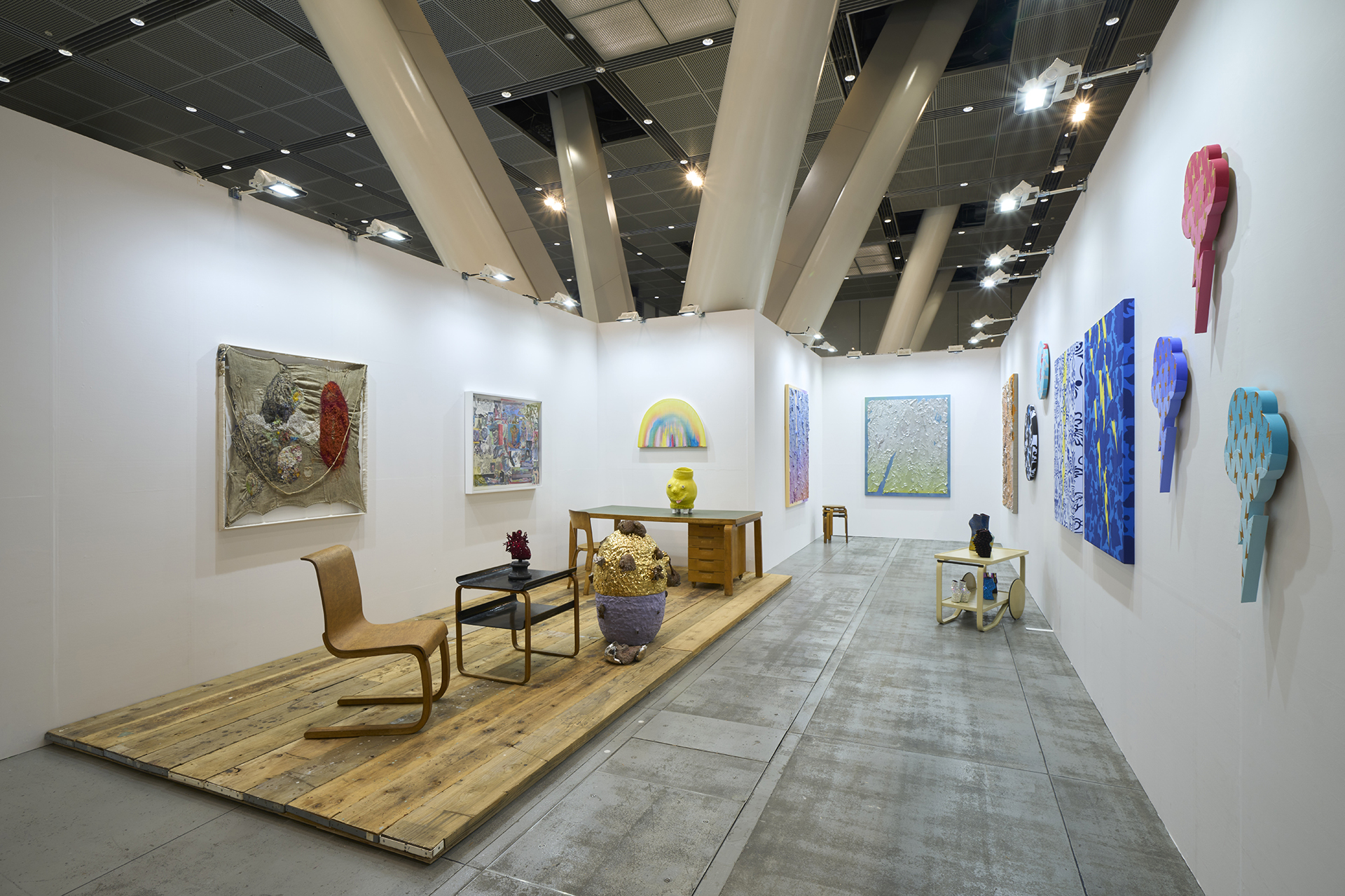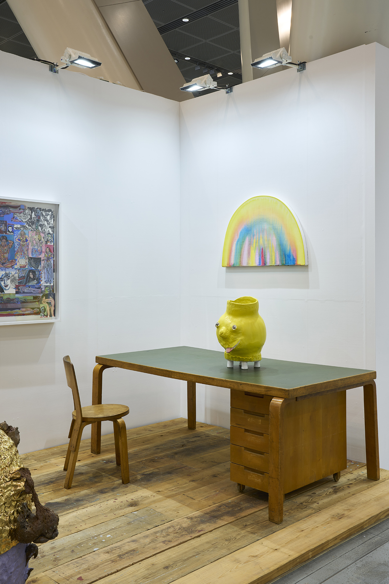 長く世界中で愛されるアアルトの家具と、新たな表現を追求するギャラリーアーティストの作品が出会う空間として、建築やデザインにも強い興味を持ち、アアルト作品のコレクターでもあったドナルド・ジャッドのアトリエからインスピレーションを得て構成しました。ジャッドは空間も作品と同様に重要な素材であると考えていたと言います。構成要素にも工夫を凝らした今回のコラボレーションブースを、この機会にぜひご高覧ください。