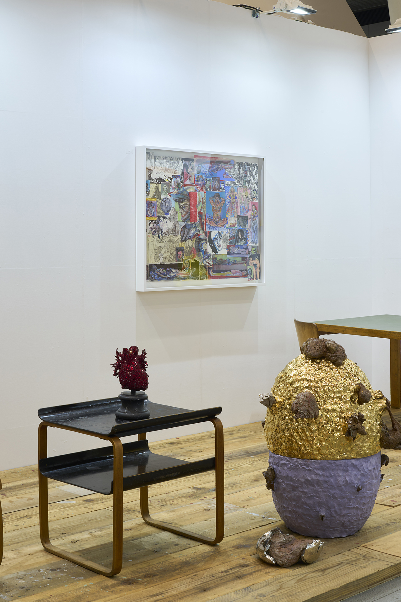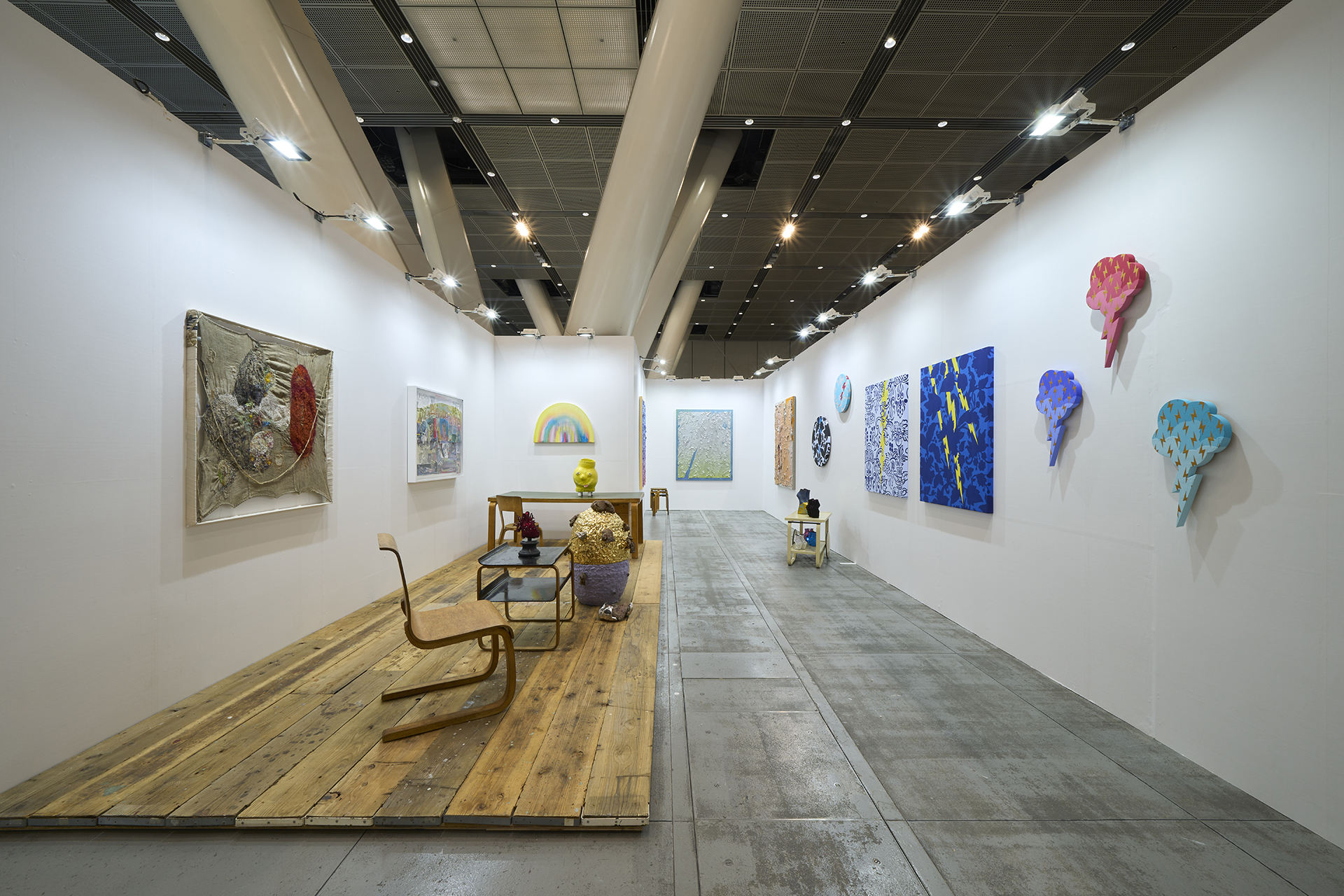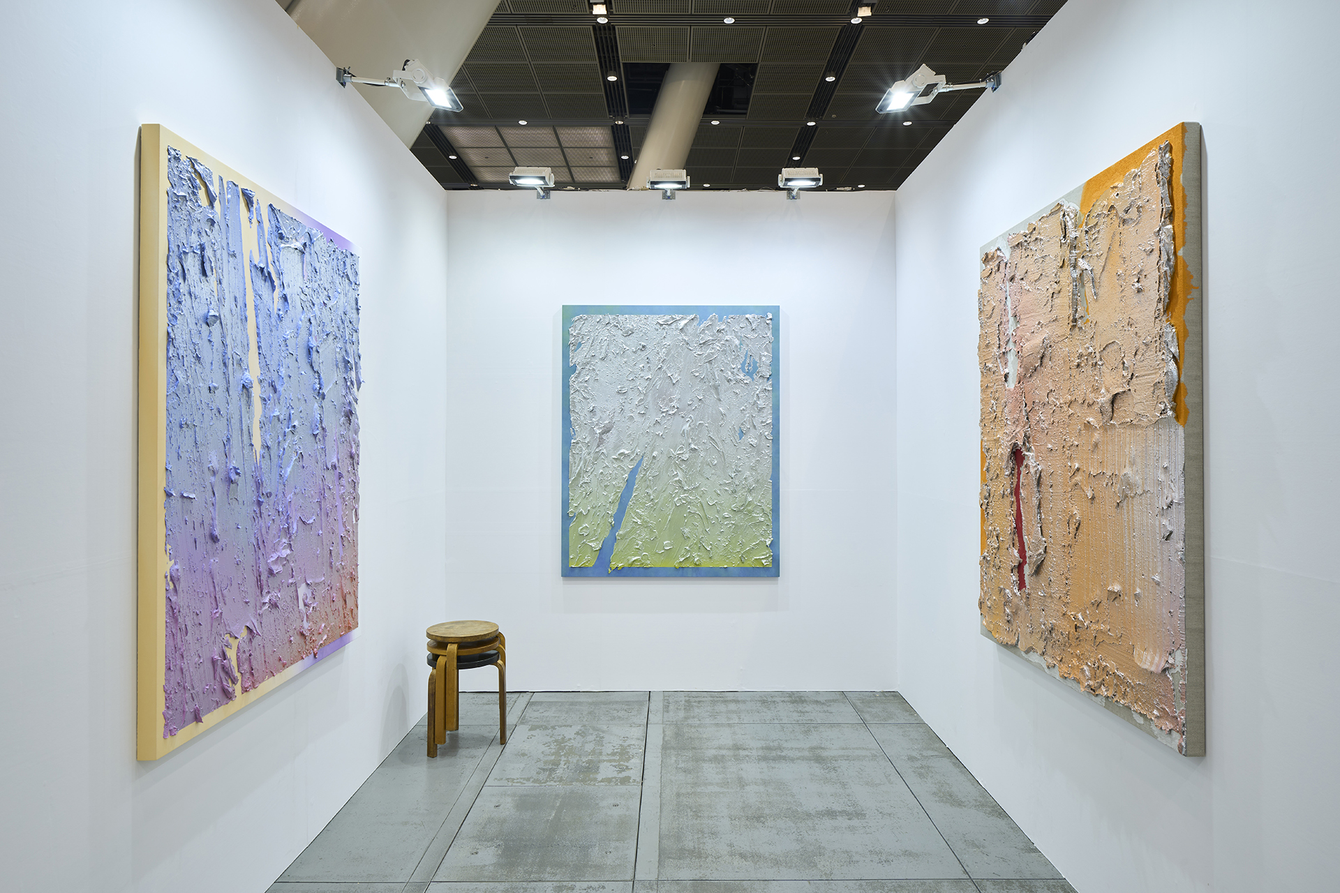 長く世界中で愛されるアアルトの家具と、新たな表現を追求するギャラリーアーティストの作品が出会う空間として、建築やデザインにも強い興味を持ち、アアルト作品のコレクターでもあったドナルド・ジャッドのアトリエからインスピレーションを得て構成しました。ジャッドは空間も作品と同様に重要な素材であると考えていたと言います。構成要素にも工夫を凝らした今回のコラボレーションブースを、この機会にぜひご高覧ください。