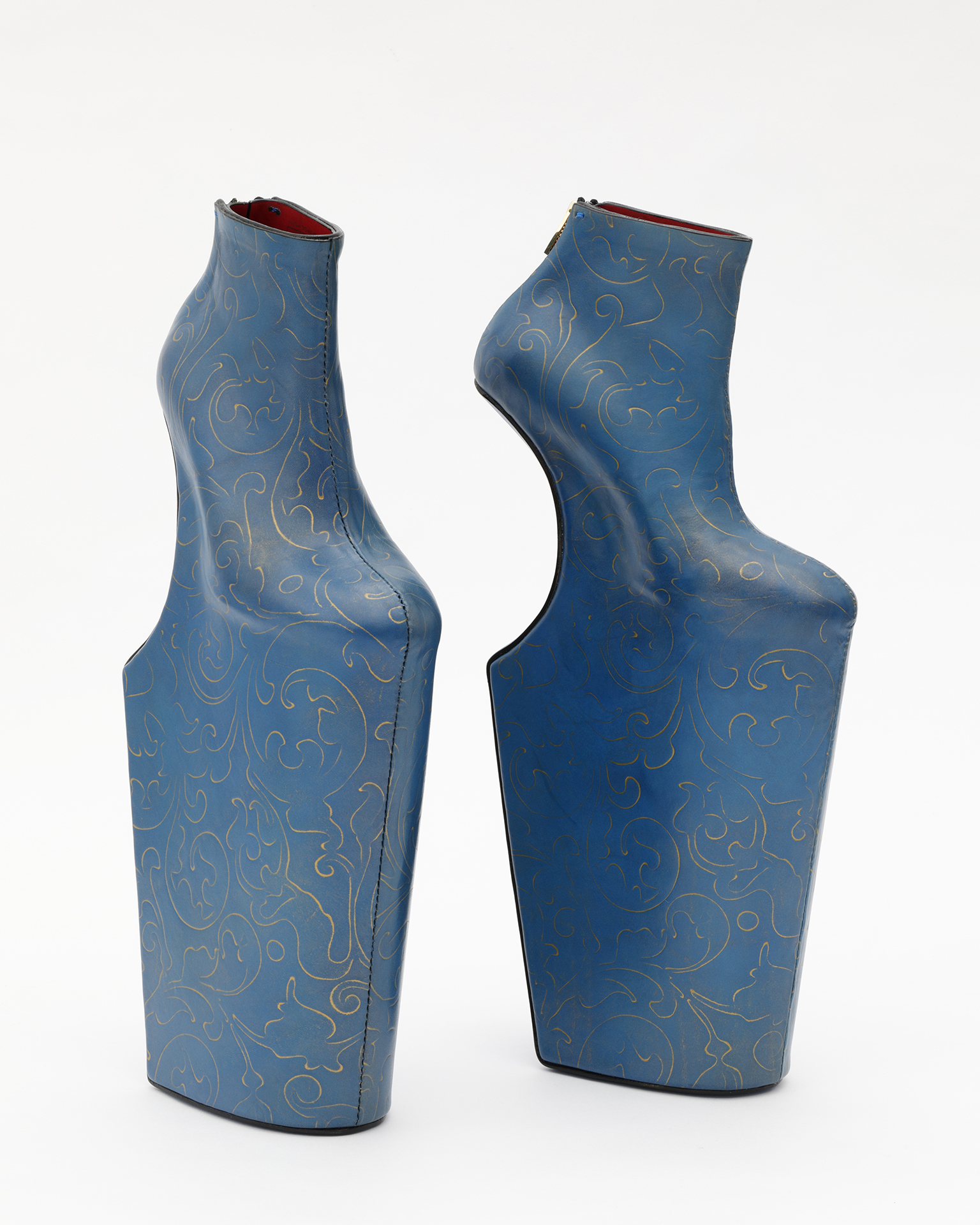 舘⿐則孝は、⽇本古来の⽂化的に価値のある部分と、現代の要素を組み合わせることで、新たな視点と世界観を提⽰します。俯瞰的な視野を持ちつつ、詳細を徹底的に掘り下げる。それが⼯芸的な⼿仕事で精緻に完成された作品として表現されます。歴史、そのなかで育まれてきた独特の美学、⽂化や思想。それらを再考することで未来への可能性を⽰す舘⿐の作品は世界で⾼く評価され、遊⼥が履く⾼下駄から着想を得た代表作《Heel-less Shoes》等の作品が、ニューヨークのメトロポリタン美術館やロンドンのヴィクトリア&アルバート博物館などに収蔵されています。