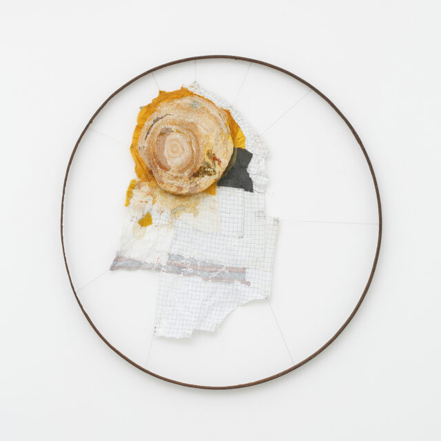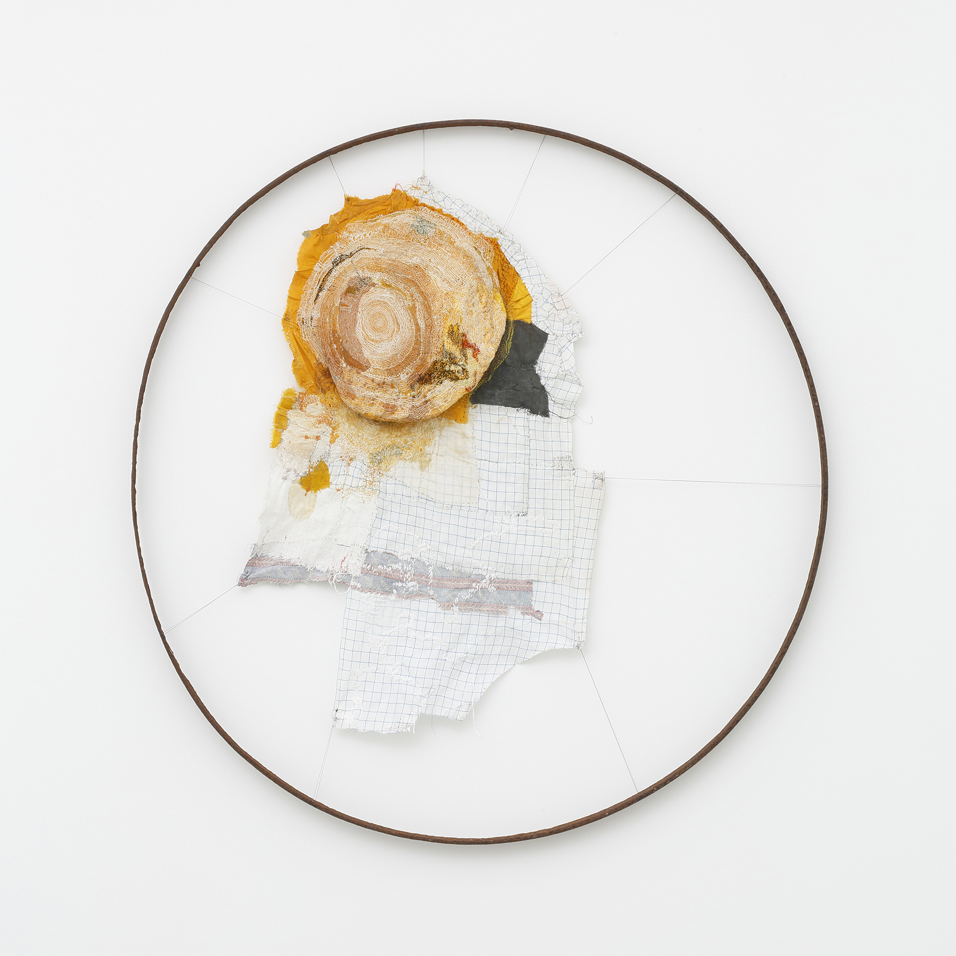 沖潤⼦は、⽣命の痕跡を刻み込む作業として布に針⽬を重ねた作品を制作しています。下絵を描く事なしに直接布に刺していく独⾃の⽂様は、シンプルな技法でありながら「刺繍」という認識を裏切り、観る者の根源的な感覚を⽬覚めさせます。古い布や道具が経てきた時間、またその物語の積み重なりに、彼⼥⾃⾝の時間の堆積をも刻み込み紡ぎ上げることで、新たな⽣と偶然性を孕んだ作品を⽣み出します。存在してきたすべてのもの、過ぎ去ったが確かにあった時間。いくつもの時間の層を重ねることで、違う⾵景を⾒つけることが制作の核にあります。