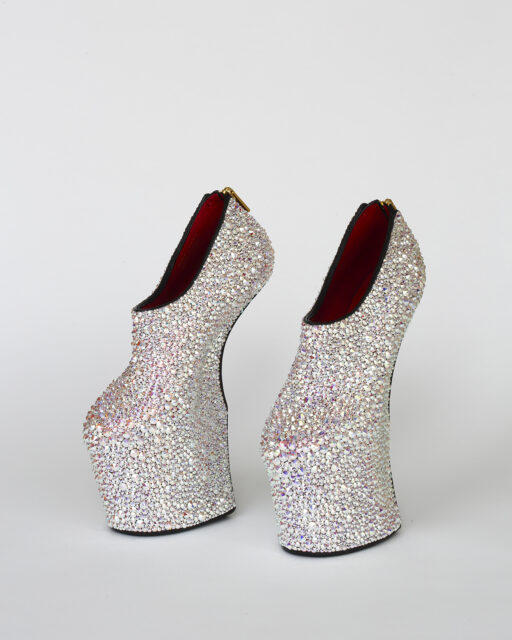舘⿐則孝は、⽇本古来の⽂化的に価値のある部分と、現代の要素を組み合わせることで、新たな視点と世界観を提⽰します。俯瞰的な視野を持ちつつ、詳細を徹底的に掘り下げる。それが⼯芸的な⼿仕事で精緻に完成された作品として表現されます。歴史、そのなかで育まれてきた独特の美学、⽂化や思想。それらを再考することで未来への可能性を⽰す舘⿐の作品は世界で⾼く評価され、遊⼥が履く⾼下駄から着想を得た代表作《Heel-less Shoes》等の作品が、ニューヨークのメトロポリタン美術館やロンドンのヴィクトリア&アルバート博物館などに収蔵されています。