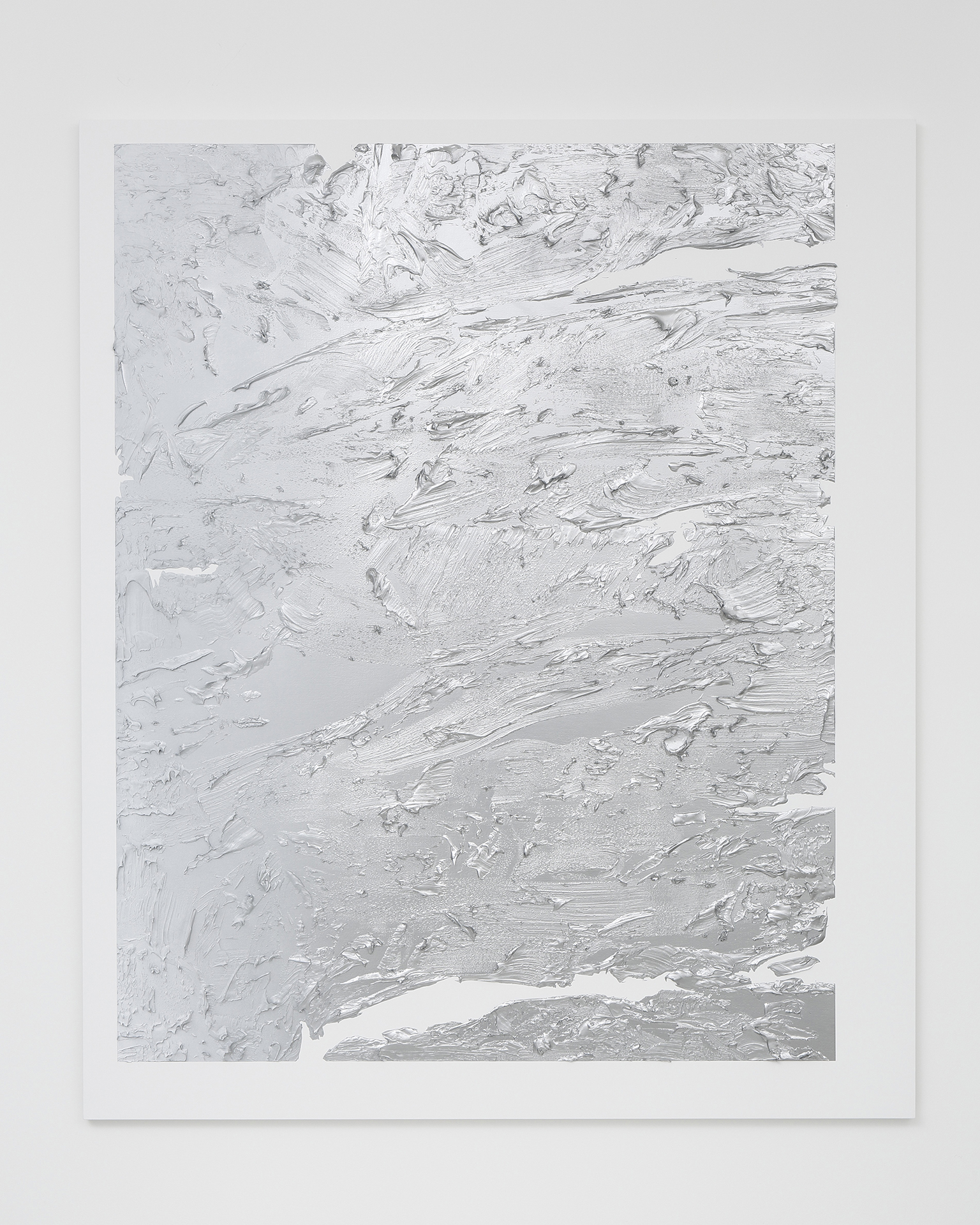Acrylic, spray paint, aluminum paint on cotton mounted on panel
